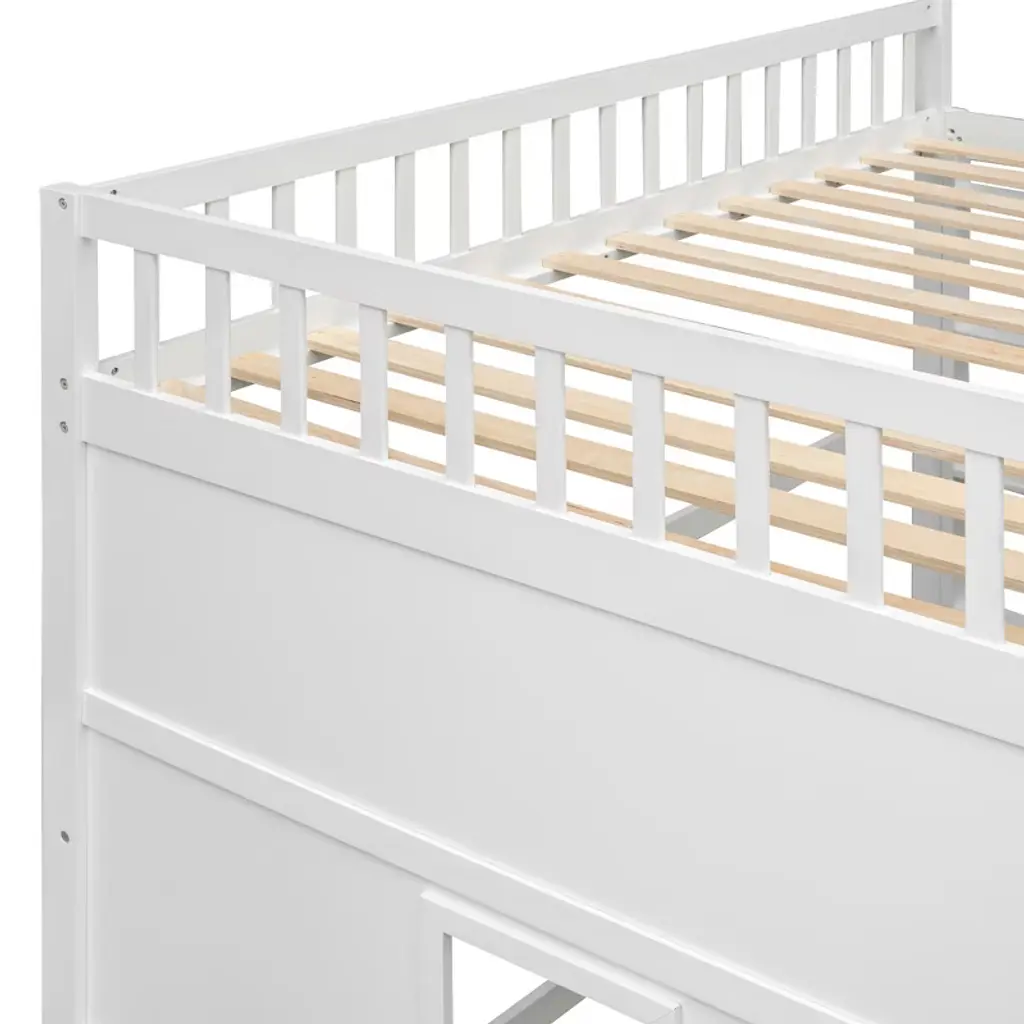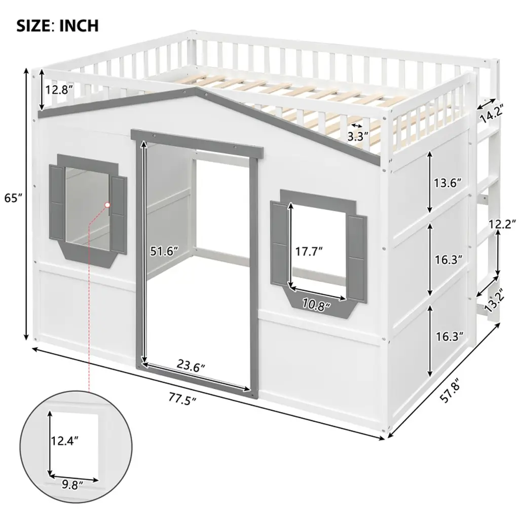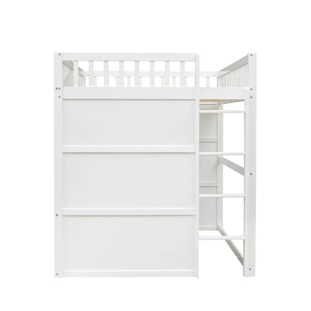 Product Features Elegant design – This Wood Full Size Loft Bed with Ladder is designed with a clean silhouette and a hue of elegance. It gives any room a spark of style that's both modern and timeless.Solid Construction – The bed structure is crafted from high-quality solid pine wood, solid pine legs and a strong, durable frame so that the bed is sturdy and durable.Stability – 13 evenly spaced and solid wood slats blend naturally into the already sturdy frame to give added ground-up support that provides stability. The loft bed features guard rails for added safety, and is accessible via the sturdy, slanted ladder. Enjoy many long years of relaxation and family fun, secure in this meticulously designed wood platform bed.Health and Comfort – No box spring required, and without needing a foundation. The simple yet elegant wood frame is sturdy and comes with slats for extra support and ensures air moves freely around your mattress to keep it fresh for years to come.Dimensions: Overall Product Dimension: 77.5" x 57.8" x 65" (L x W x H). Mattress not included. Some assembly is required, although we have provided clear instructions and tools. Description This Full Size Loft Bed with Ladder is a stylish bed frame that works well with a variety of decorating styles and makes it easy for you to enhance and improve your space. Featuring strong, solid pine wood and many supporting slats, this bed is built to last, ensuring it will accompany you for many years. The beautiful finish lends an elegant look makes this bed frame an excellent addition to any bedroom, do not miss the chance take it home today. Weight & Dimensions Overall Product Dimension: 77.5"L x 57.8"W x 65"HDetail Product Dimension: Please refer to the Size imageNumber of Package: 1Package Dimension: Please refer to the SpecificationOverall Product Weight: 144.74LBSPackage Weight: Please refer to the SpecificationWeight Capacity: 400LBSRecommended Mattress Thickness: 6"Recommended Age: £¾ 6 years old Specifications Product Type: Loft BedSize: FullMaterial: Plywood + MDF + PinewoodBox Spring Required: NoAssembly Required: YesNotes: Manual measurement has been used, there may be some reasonable error. All the pictures are taken by actual samples, slight chromatic aberration may occur due to lighting or display.