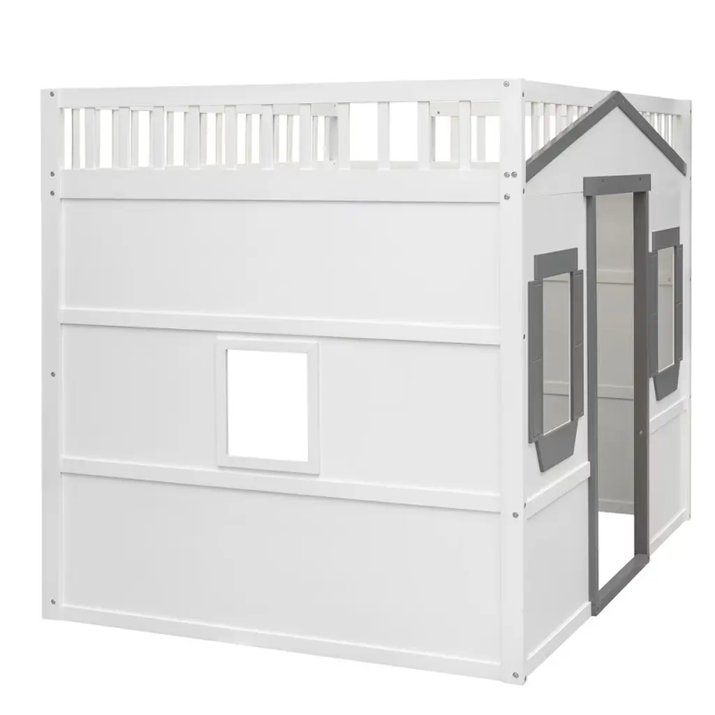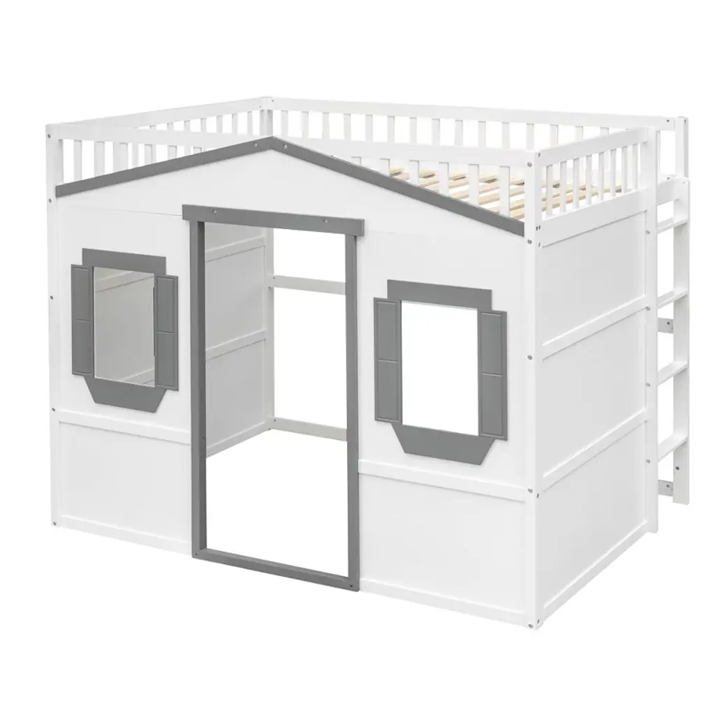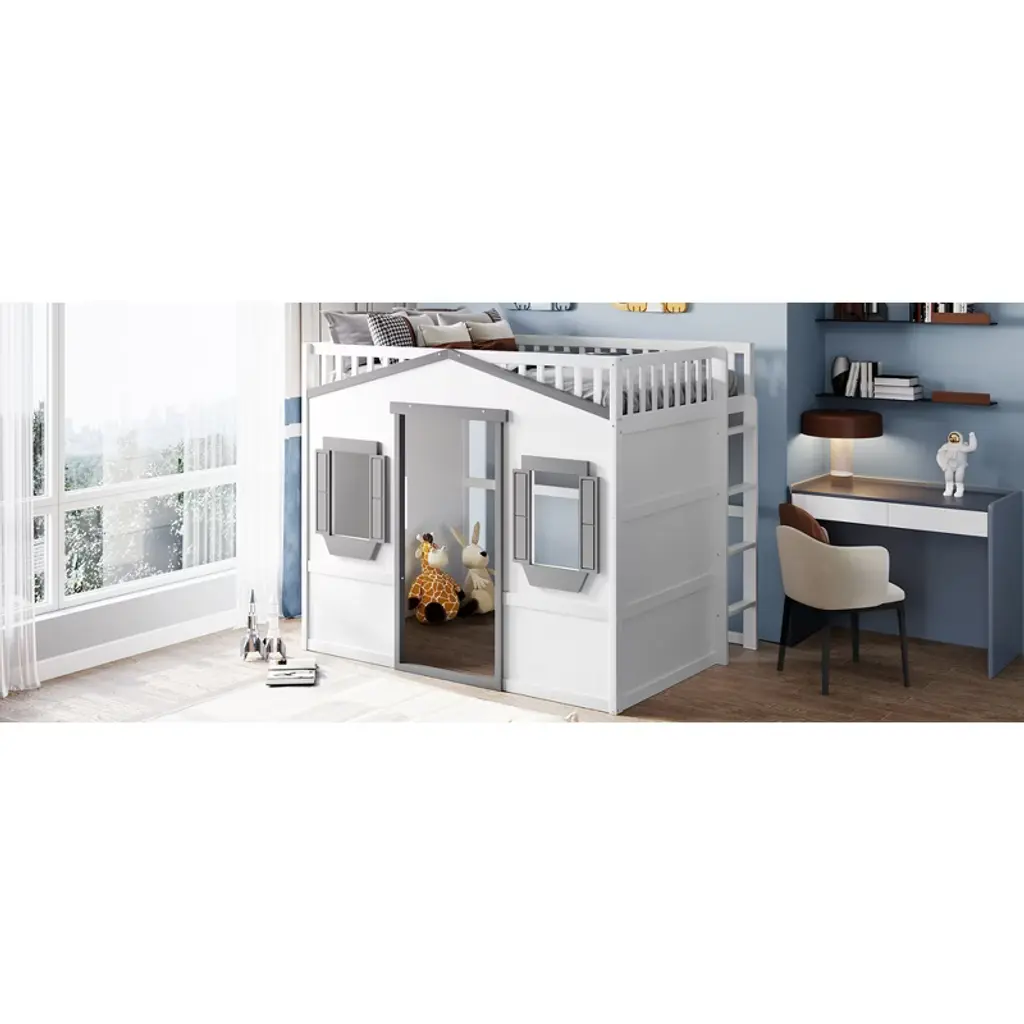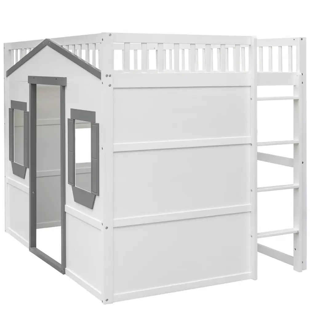Full Size House Loft Bed With Ladder For Bedroom