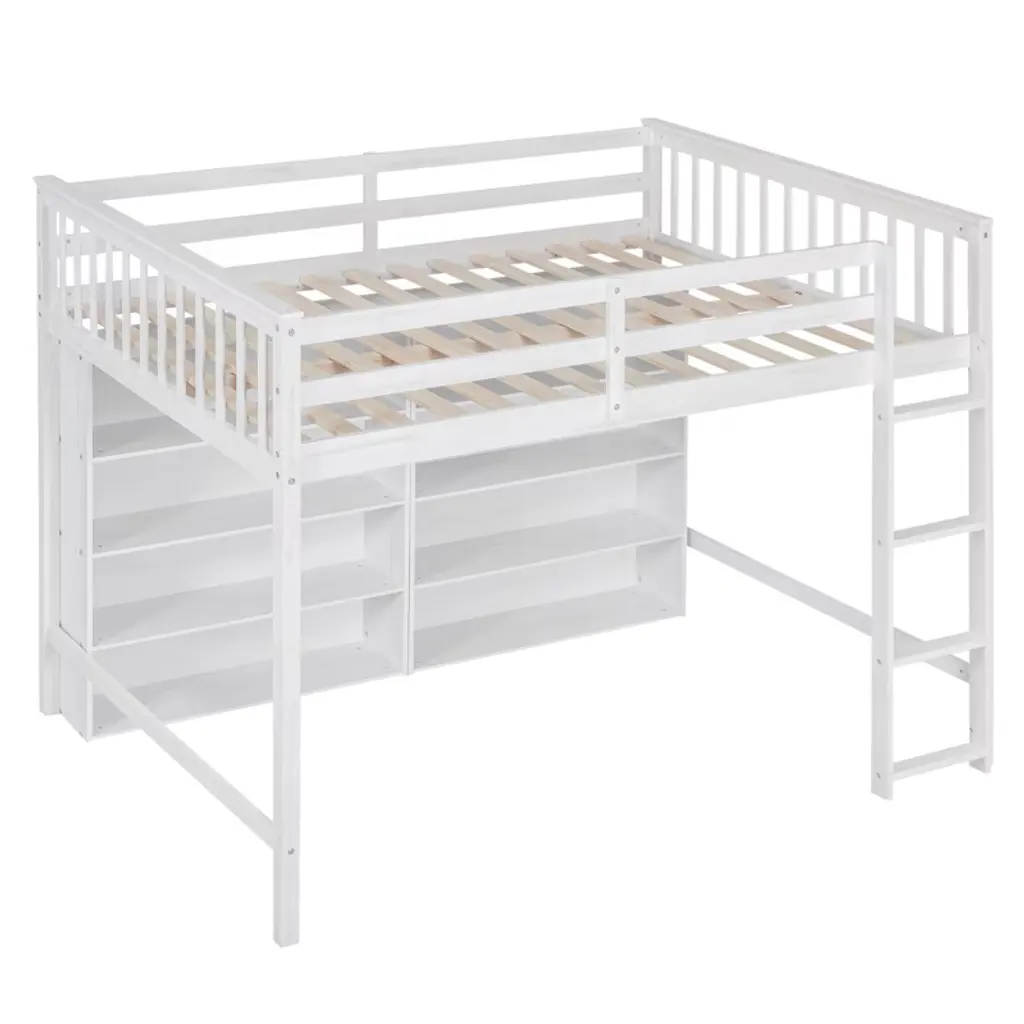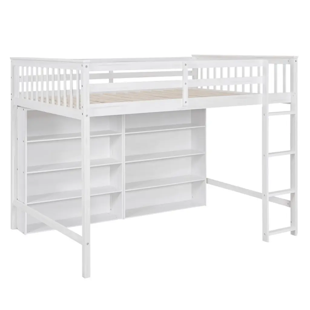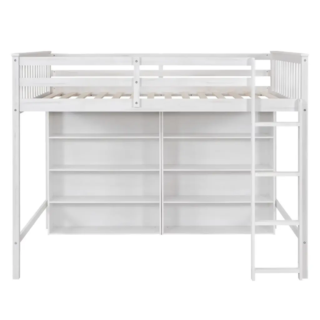 Full Size Loft Bed With 8 Open Storage Shelves And Built-in Ladder