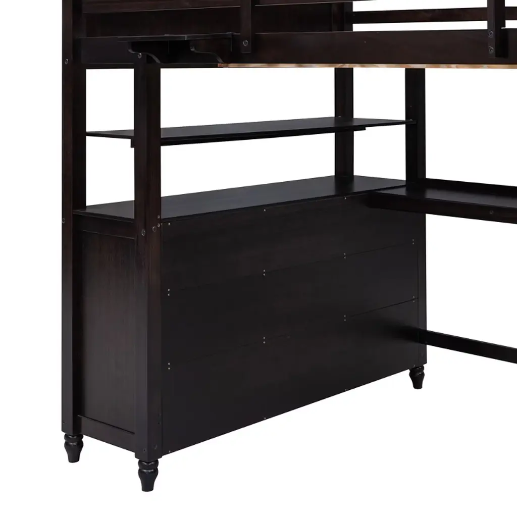 Product Features Space-saving - Four big drawers in front of the loft bed and the lateral shelves can provide enough space to stock your clothes, books, toys or any small items you like. You can also put some decorations on it to make the bed look even better.Versatility galore - The Loft bed with a retractable desk and a portable desk in flank provide great convenience for you to work, study or just for decorations. The bed would be beautiful and practical with your great imagination.Solid Construction - This multi-functional loft bed is crafted from a solid pine wood frame, with commercial grade MDF board for quality control and durability. Guardrails are solidly attached for added safety.Easy Assembly - The loft bed is delivered in two packages, along with the installation manual and full set of hardware necessary to guide you through the process of assembly, and the bed will definitely be assembled conveniently.Overall Dimensions - Overall Product Dimension: 76"L x 41.8"W x 43.3"H. Mattress not included. Some assembly is required, although we have provided clear instructions and tools. Description If your family needs a bed for both sleep and study, this loft bed will be a good choice for you, it will have you saving space and maximizing functionality with a wide array of features. It is a perfect study area while also allowing space to store your belongings. The front retractable desk and lateral portable desk provide great convenience and flexibility for you to read, do homework or play and create their own world to be explored. The bed with comprehensive guardrails to ensure your sleep safety. You don't need to worry about its quality. The design of the bed is elegant and can fit into your bedroom well. Weight & Dimensions Overall Product Dimension: 76"L x 41.8"W x 43.3"HDetail Product Dimension: Please refer to the Size imageNumber of Package: 2Package Dimension: Please refer to the SpecificationOverall Product Weight: 220.46 LBSPackage Weight: Please refer to the SpecificationWeight Capacity: 300 LBSRecommended Mattress Thickness: 6"Recommended age: > 6 years old Specifications Product Type: Loft BedSize: TwinMaterial: Plywood + MDF + PinewoodThe number of slats: 14Assembly Required: Yes