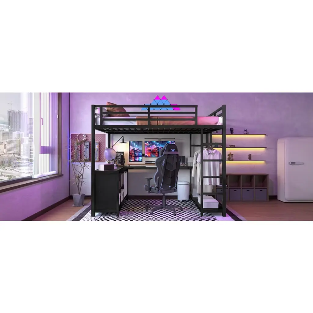 Full Size Metal Loft Bed With Storage Cubes And Shelves
