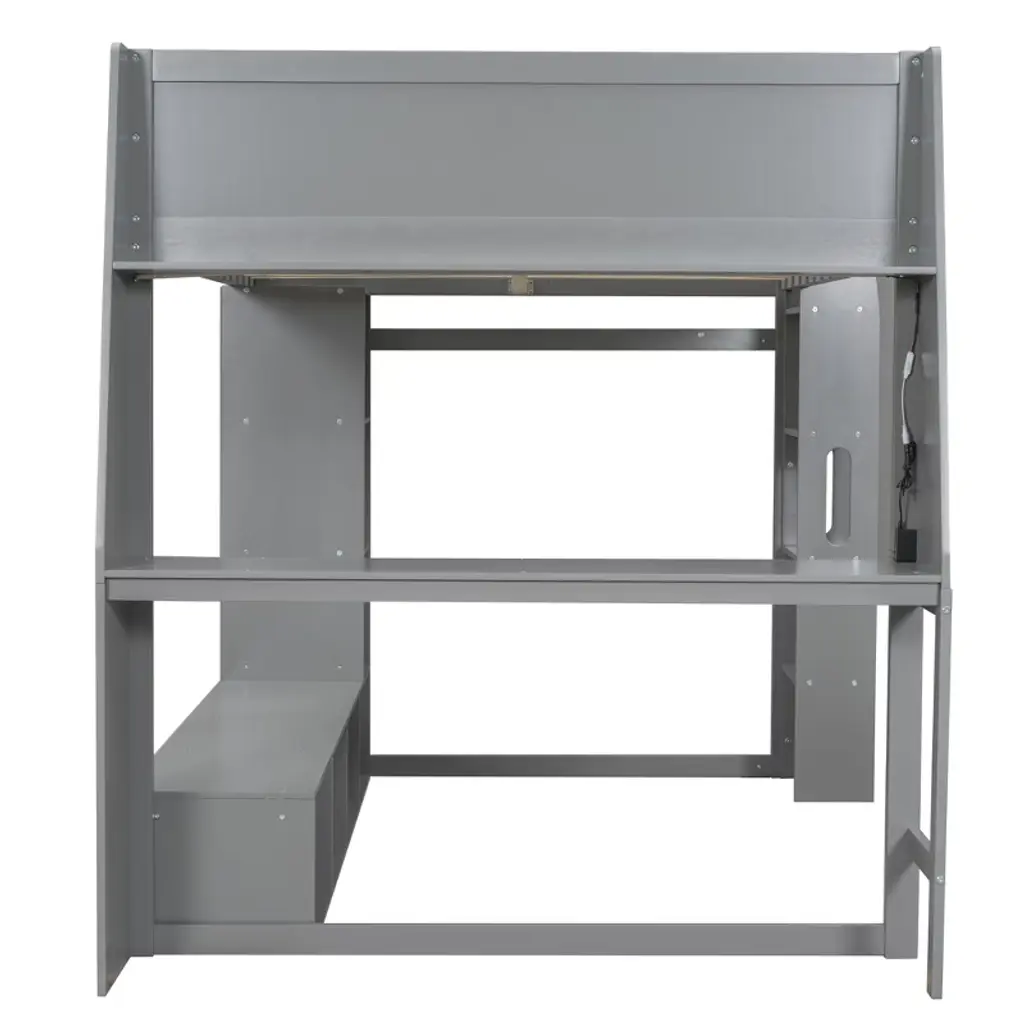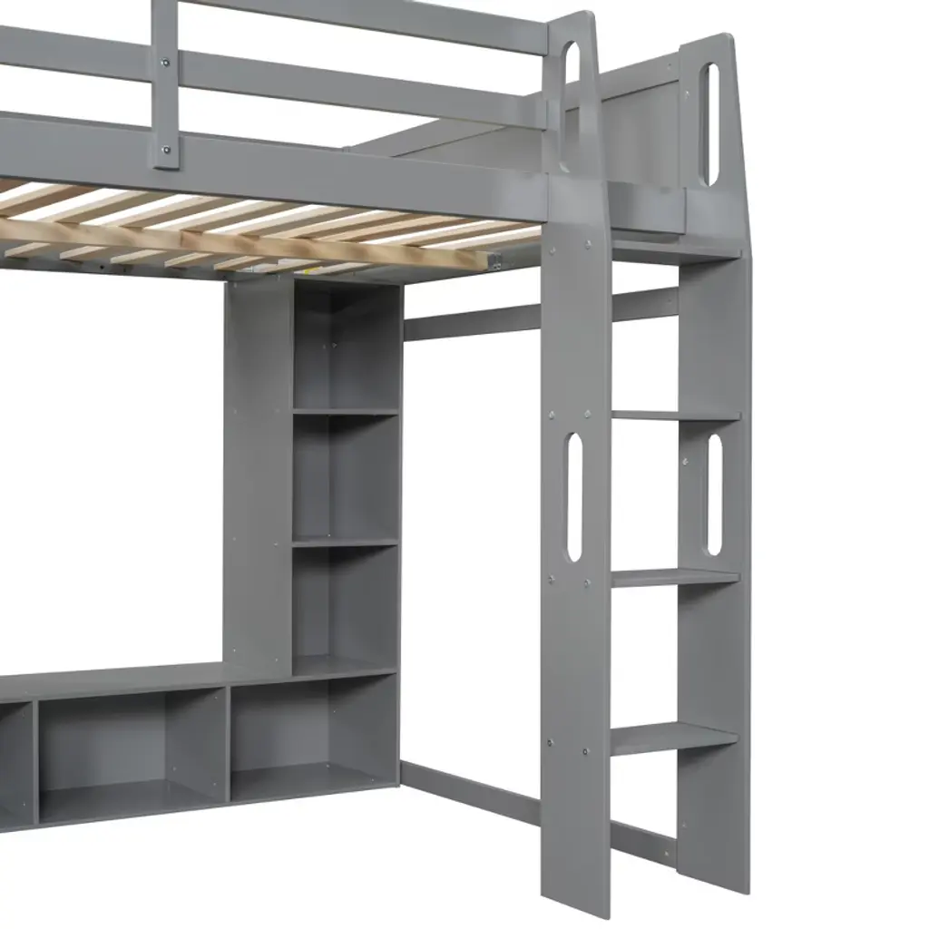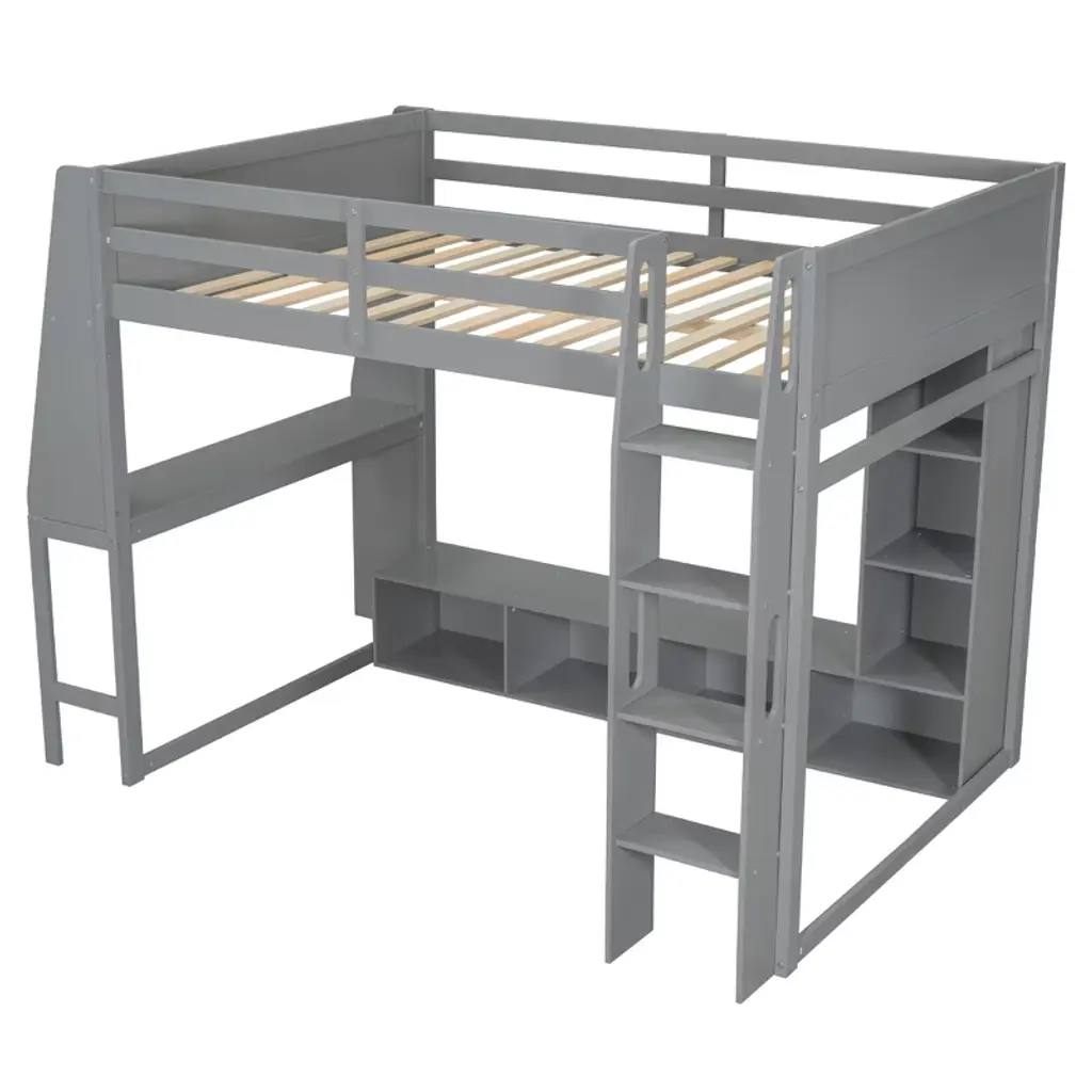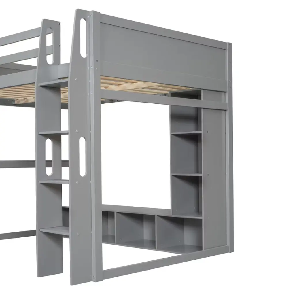 Full Size Wood Gaming Loft Bed With Desk And Multi-storage Shelves