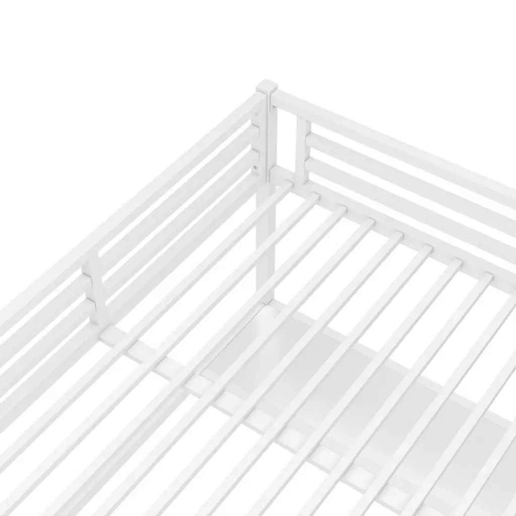 This metal loft bed maximizes space with a dual-purpose design, splitting into two separate areas for rest and productivity—ideal for small rooms. It includes a built-in desk for work, study, or gaming, plus a front power outlet and USB charging station to keep electronics powered conveniently. The DIY smart light offers multiple modes, letting you customize a dreamy atmosphere to suit any mood. Crafted with a sturdy metal frame, it features full-length guardrails on the upper bed to prevent falls, ensuring safety for kids. Certified by the Children’s Product Certificate (CPC), it meets strict safety standards. Assembly is straightforward with numbered parts, clear instructions, and all necessary tools included, making setup hassle-free.