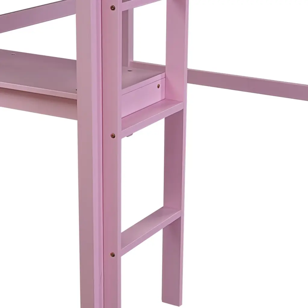 Kumasinova Twin Size Bunk Bed,solid Rubberwood High Loft Bed For Teens,space-saving Loft Bed Frame With Desk,guardrails&ladder,200lbs Max,pink