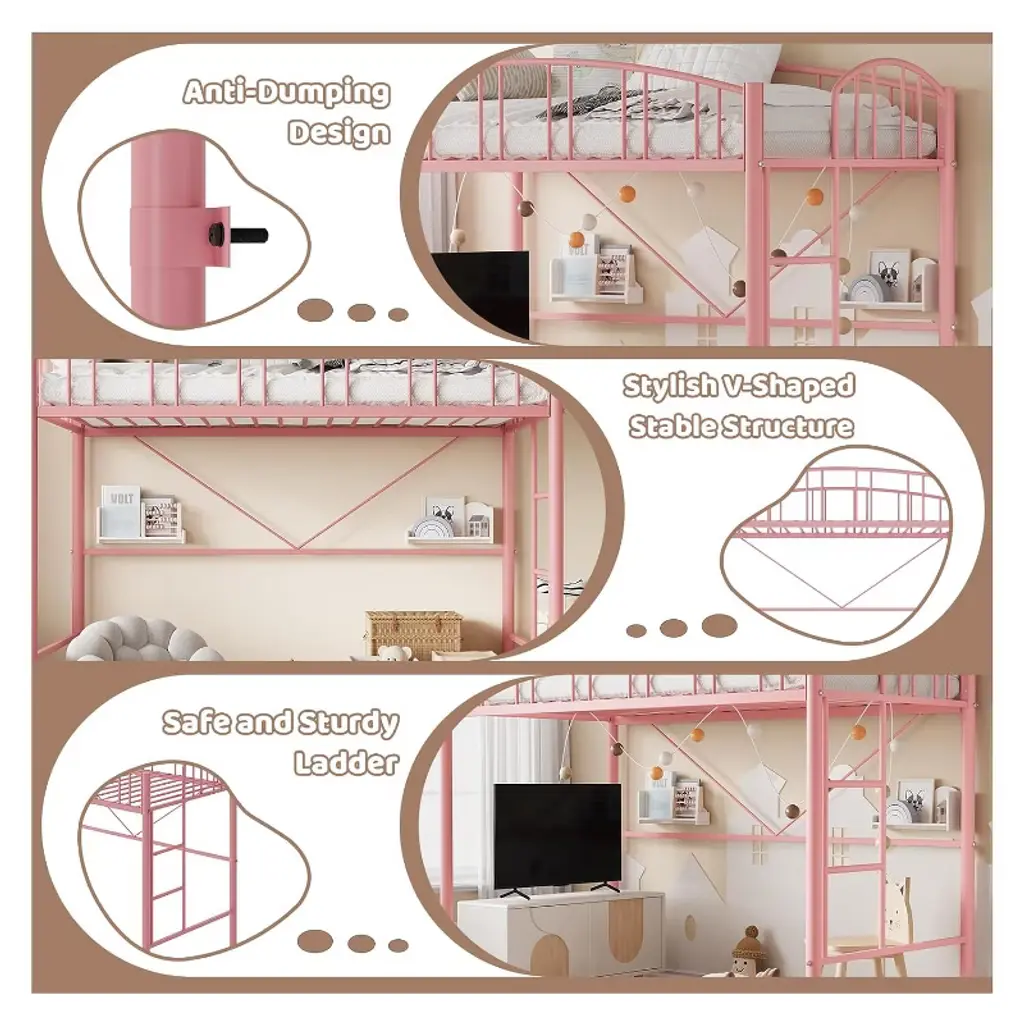 ¡¾Safety Assurance¡¿The top bunk features a 15-inch high guardrail, providing extra stability and preventing accidental falls. The bottom bunk is equipped with both a headboard and footboard, offering additional comfort and security. Important: For optimal safety, ensure the mattress height is at least 5 inches below the guardrail ¡¾Space-Saving Design¡¿This bunk bed twin over twin is an ideal solution for maximizing space in your bedroom or guest room. Perfect for large families or rooms with limited space, it ensures that even when the room is small, you can comfortably accommodate two people without compromising on space ¡¾Durable and Sturdy Construction¡¿This bunk bed twin over twin is made from a heavy-duty metal frame with tight metal slats support for added stability. Every component is securely fastened with heavy-duty screws, ensuring a wobble-free experience. With a 400 lbs weight capacity, this loft bed is designed to support kids and adults. No need for a box spring ¨C just place your mattress directly on the slats