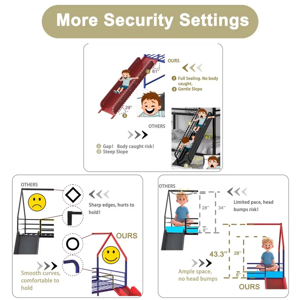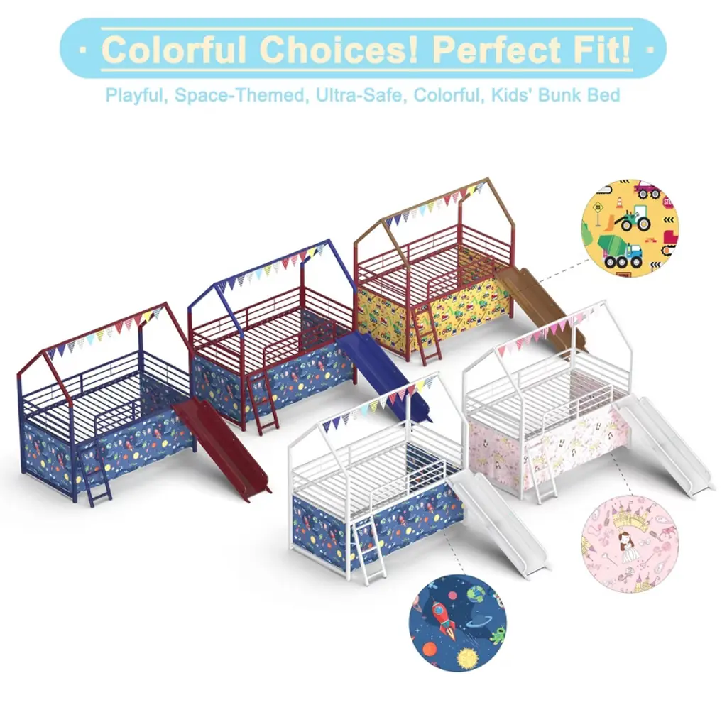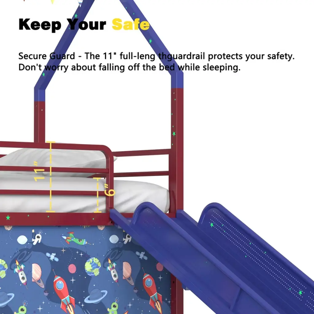 Create a fun-filled playground paradise for your child. Our Jack Metal Junior House Twin Loft Bed perfectly combines safety, comfort, and creativity in one children's bed. This house-shaped bunk bed with slide isn't just a place to sleep—it's a playground for your child's imagination.