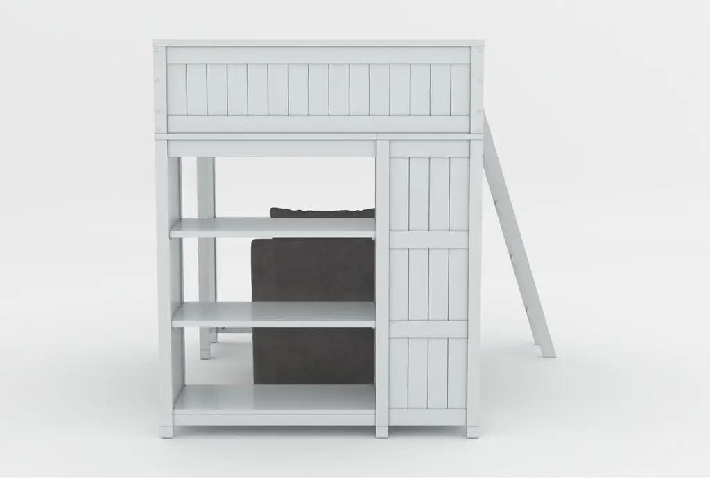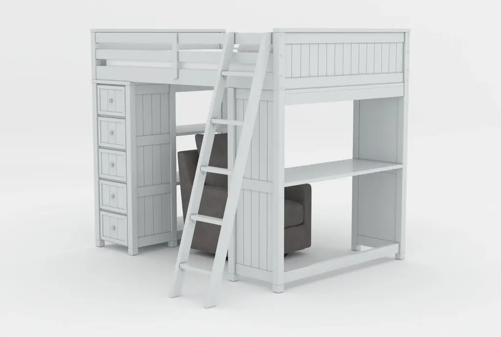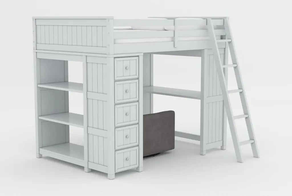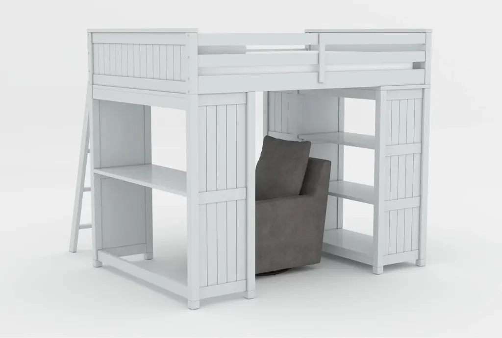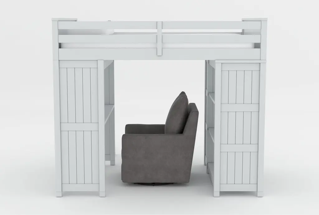 Luca Grey Full Wood Sleep & Study Loft Bed With Bonaterra Charcoal Swivel Glider Chair