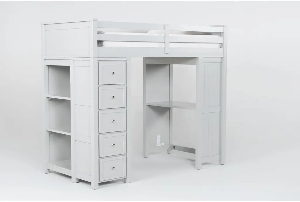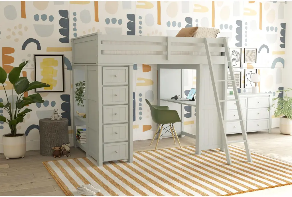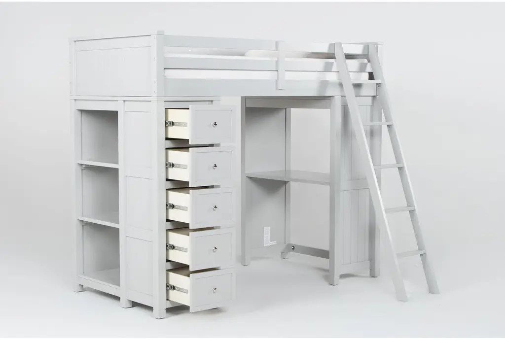 Luca Grey Wood Twin Sleep & Study Loft Bed With Storage | Drawers