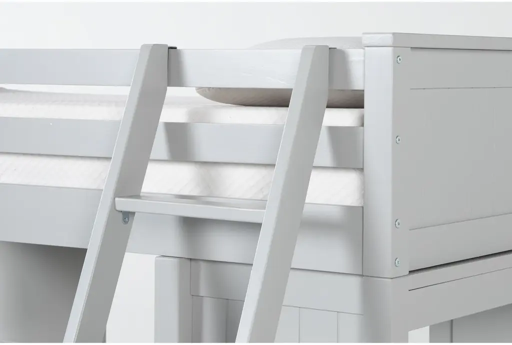 The Luca Grey Wood Twin Sleep & Study Loft Bed with Storage is a perfect addition to any child's room. This contemporary loft bed is designed to maximize space while providing a comfortable sleeping area and a functional study space. The grey finish and solid pine construction ensure durability and a modern look that complements any decor.