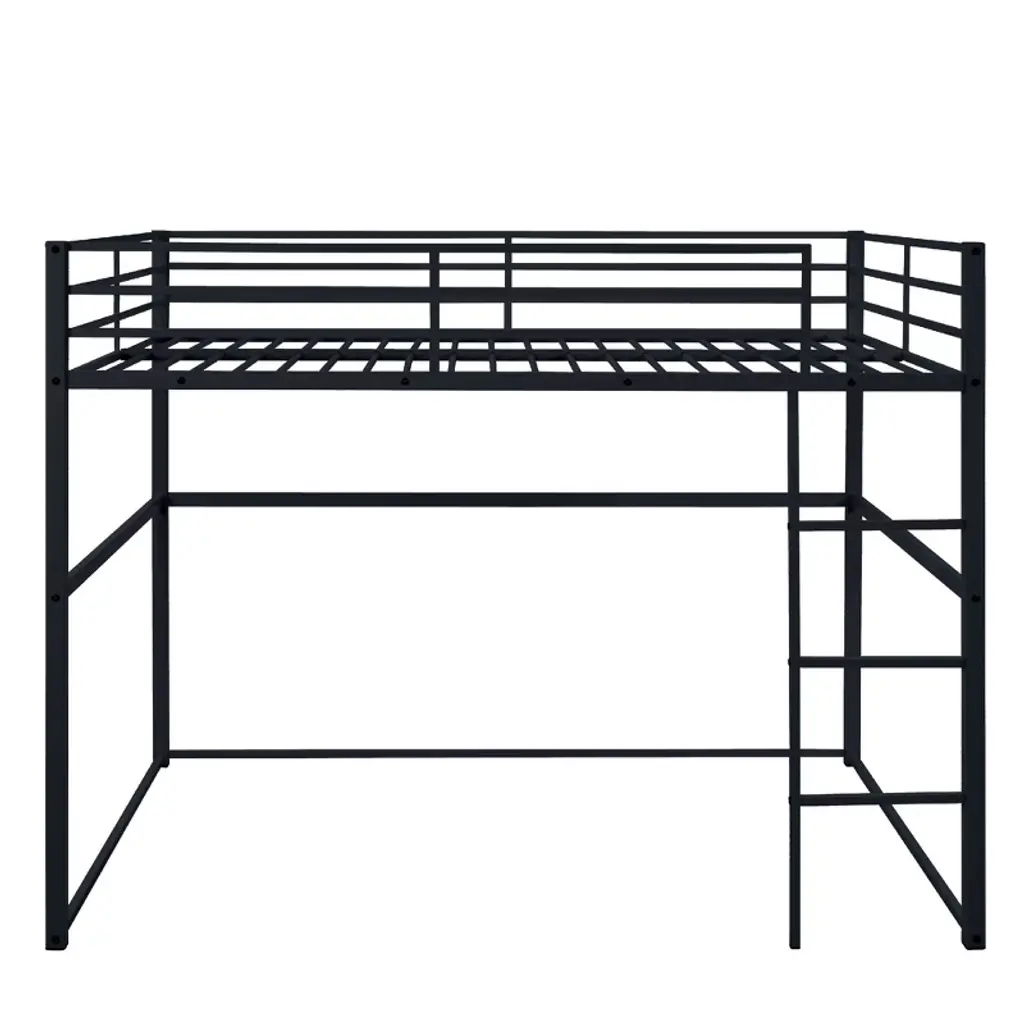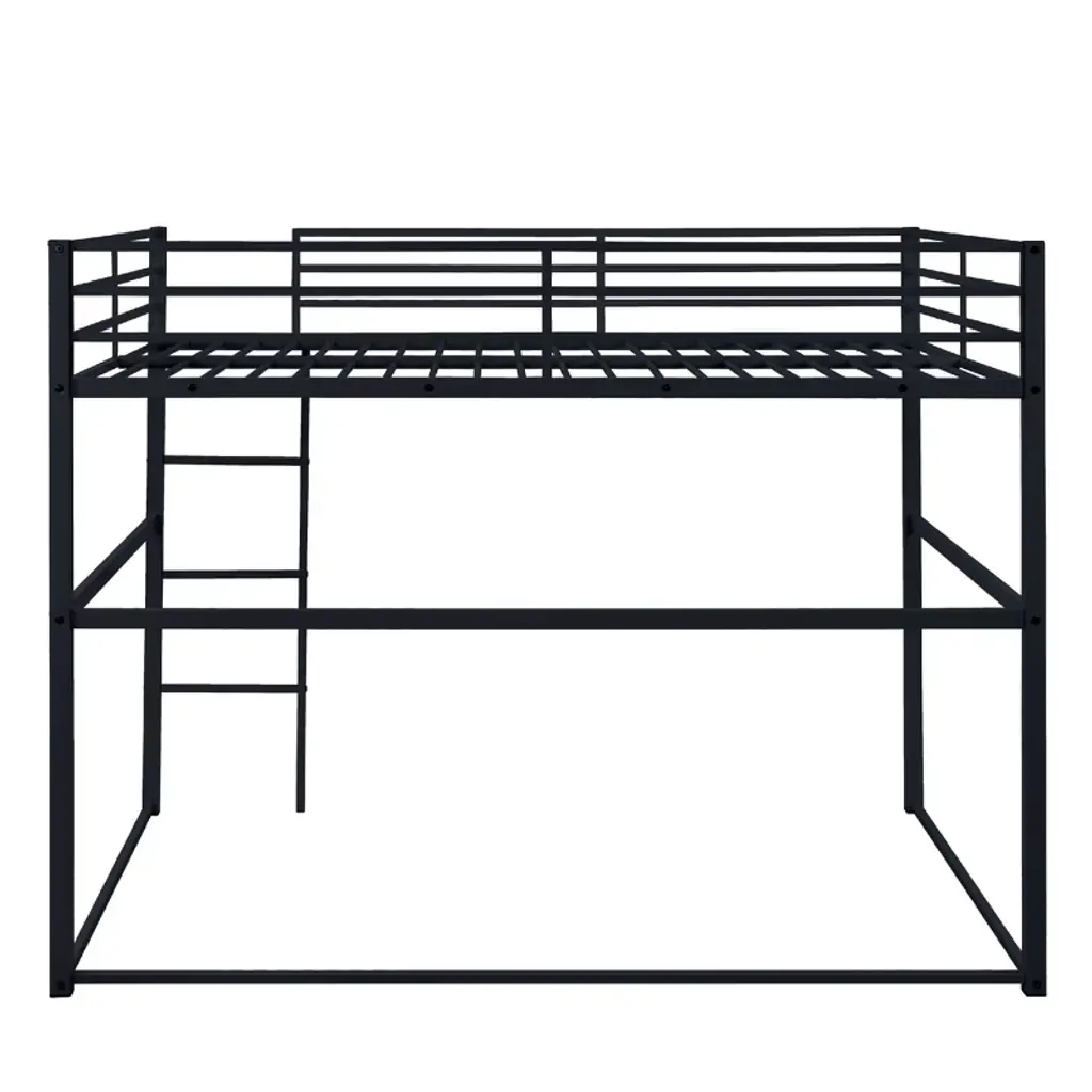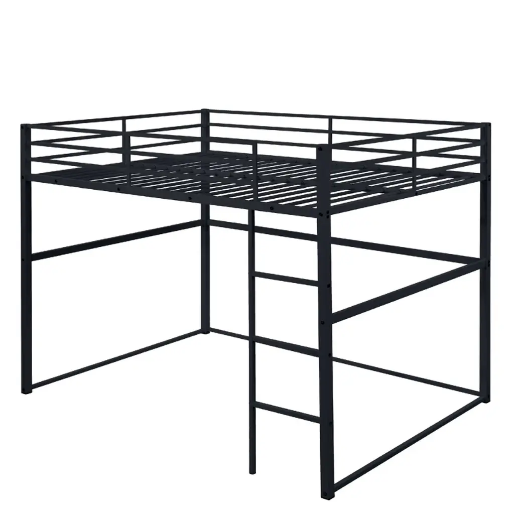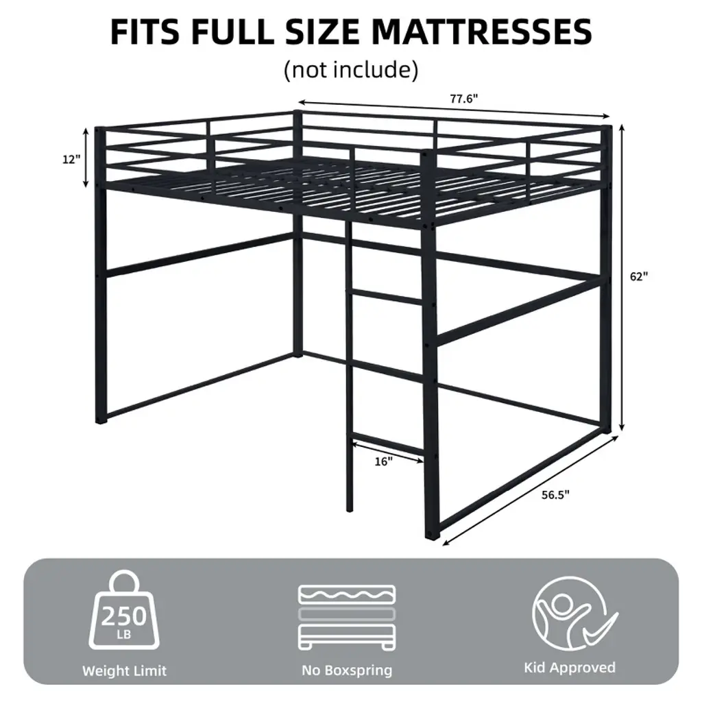 Metal Loft Bed Full Size, Loft Bed Frame With Safety Guard Rails And Flat Ladder, Twin Loft Bed For Kids Teens Adults, Black