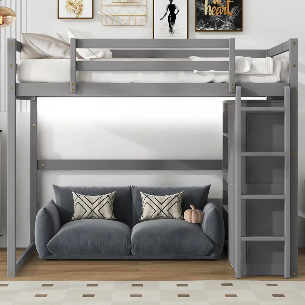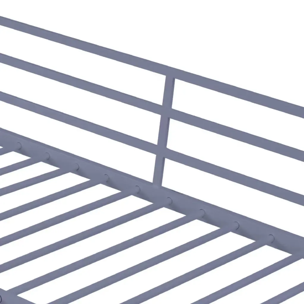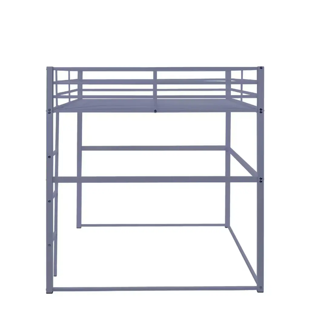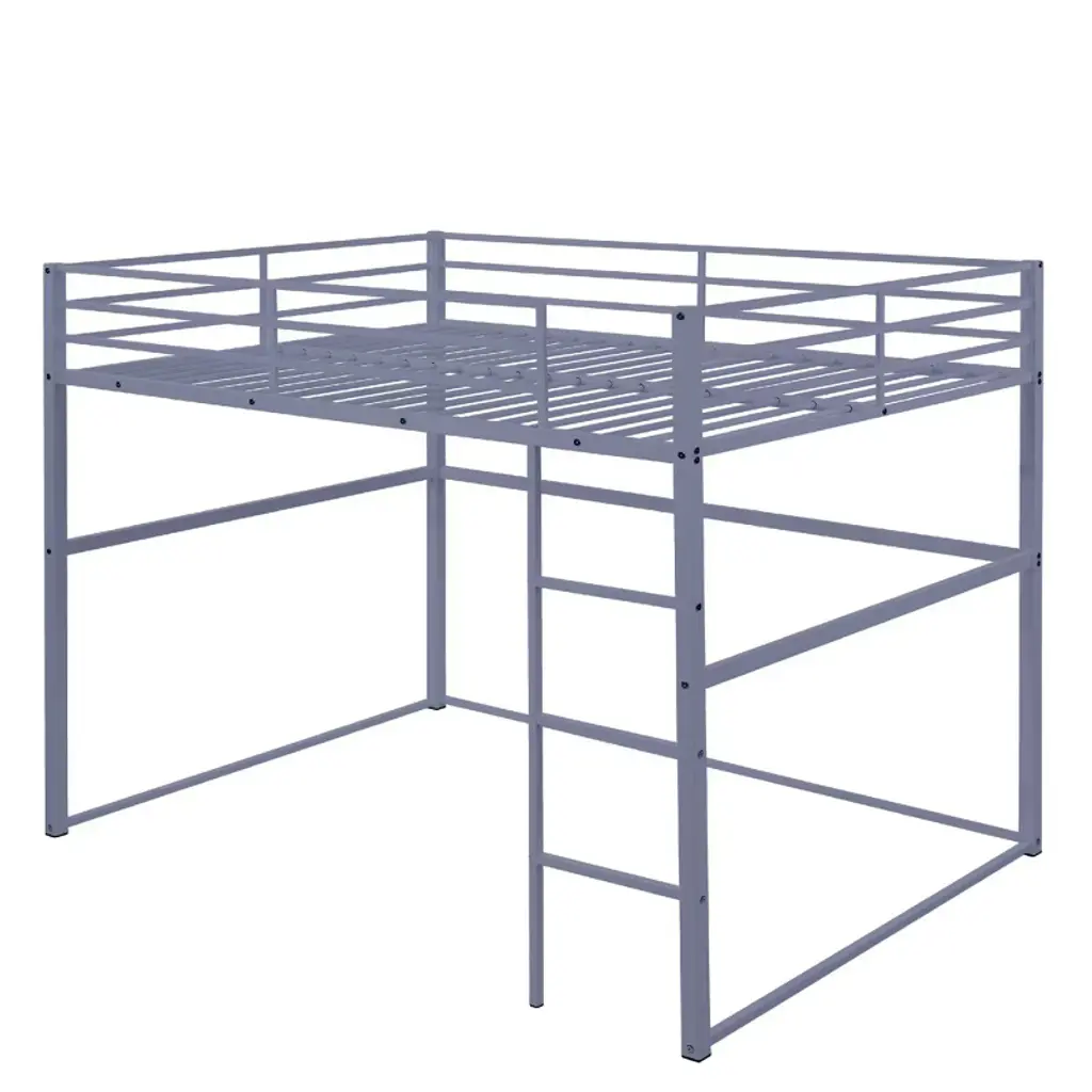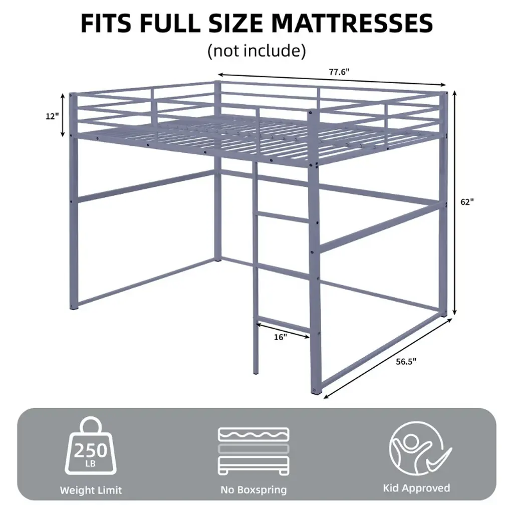 Metal Loft Bed Full Size, Loft Bed Frame with Safety Guard Rails & Flat Ladder, Twin Loft Bed for Kids Teens Adults, Gray