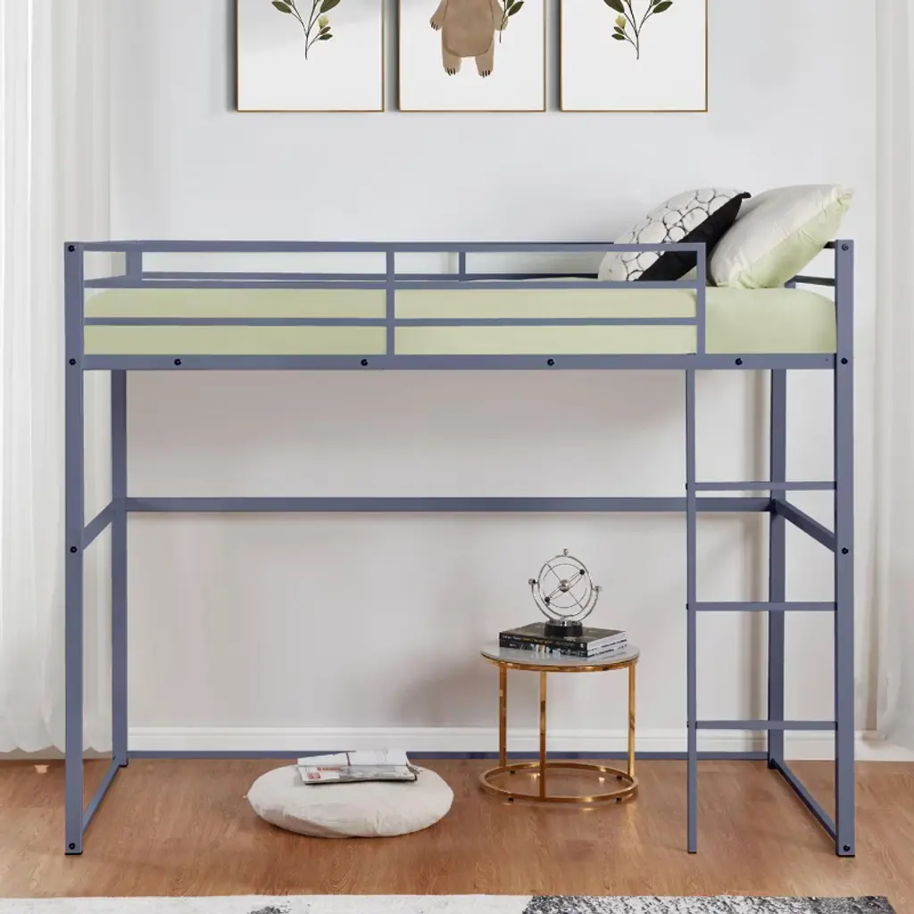 Metal Loft Bed Full Size, Loft Bed Frame With Safety Guard Rails & Flat Ladder, Twin Loft Bed For Kids Teens Adults,gay