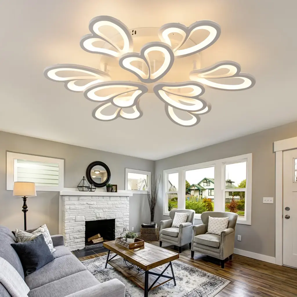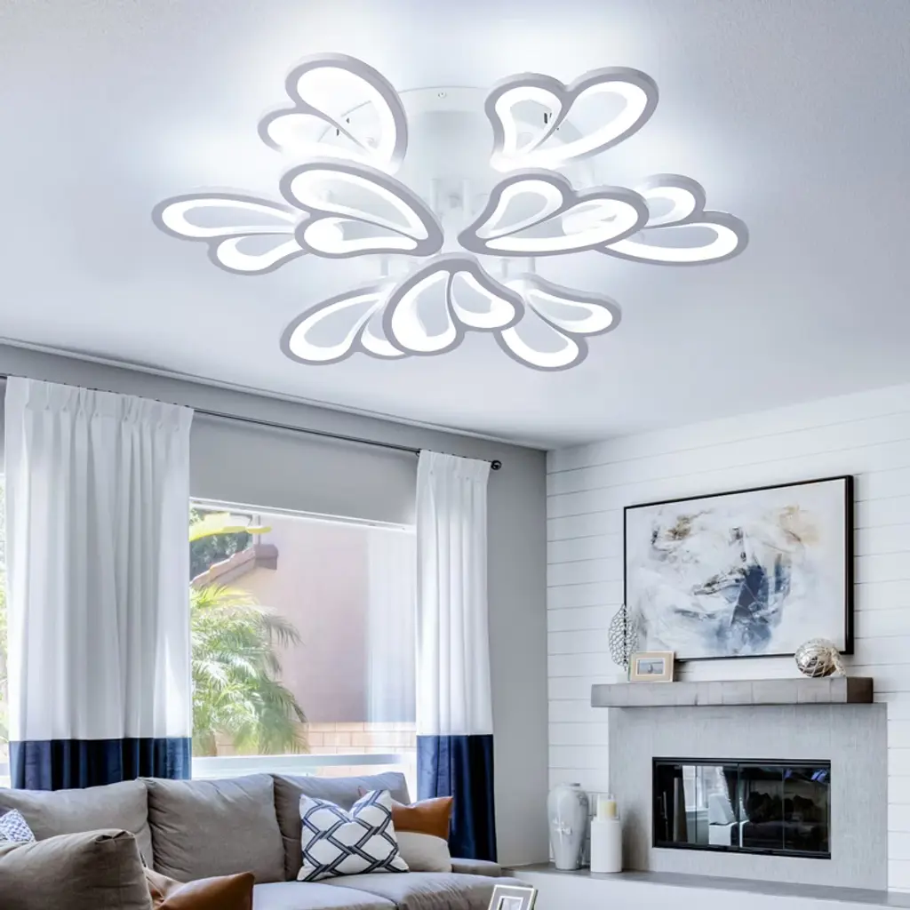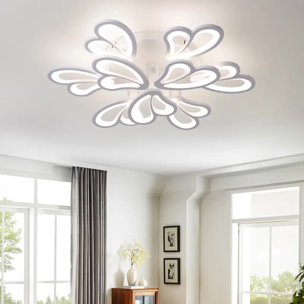 Modern Led Semi Flush Ceiling Light With 3 Color Modes, Dimmable Brightness And Remote Control For Bedroom, Kids Room, Apartment, Or Loft,9 Lights