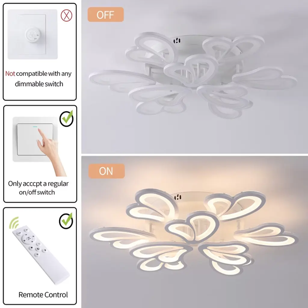 Brighten your home with this modern LED semi-flush ceiling light, designed with three color modes and dimmable brightness for customized comfort. The included remote control makes it easy to switch lighting settings and adjust brightness levels, providing the perfect atmosphere for any room. Sleek and versatile, this ceiling light is ideal for bedrooms, kids rooms, apartments, or lofts, offering both modern style and practical function.