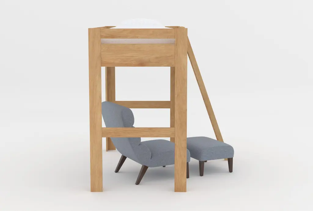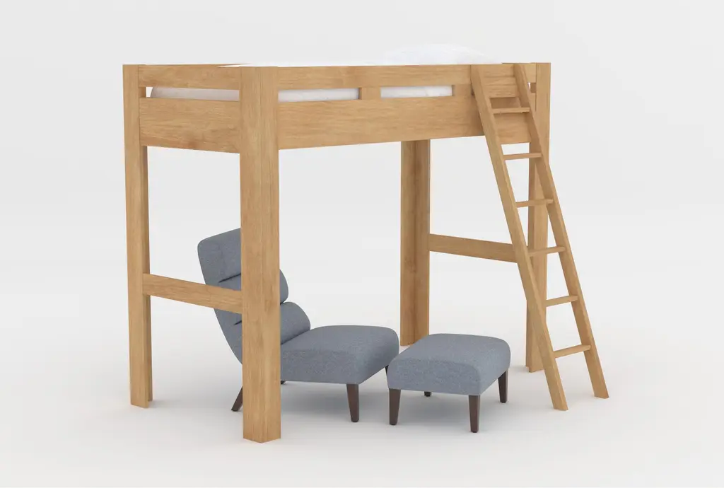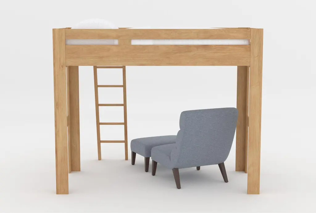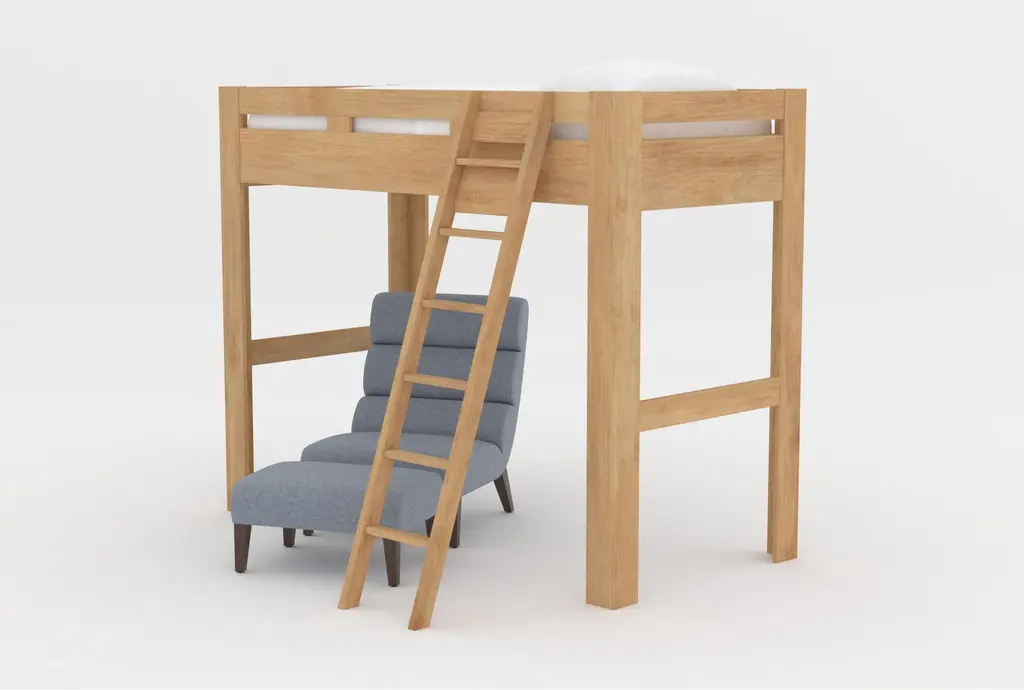 Nora Natural Twin Wood Loft Bed With Lucca Blue Accent Chair & Ottoman