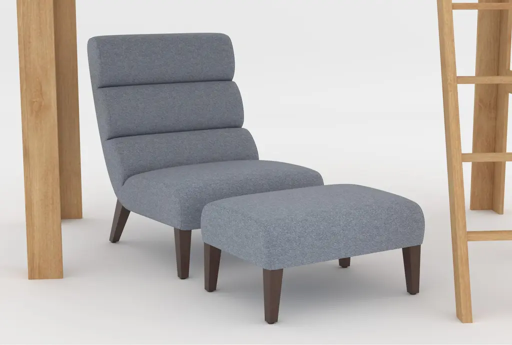 Designed to meet the needs of your family, our Nora bedroom collection invites you to create a space where your kids can relax, learn, play and grow. Each piece is constructed to ensure the utmost safety and durability with solid pine and cathedral oak veneers. Versatile, functional and streamlined, this collection offers multiple finishes and items to choose from, so you can get everything you need. A switchable ladder can be used on either side of the bed. The Lucca Blue accent chair and ottoman offer cozy seating to match.