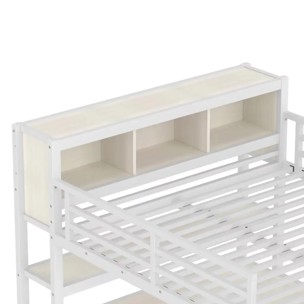 Queen Size Loft Bed With L-shaped Desk, Storage Cubes And Shelves