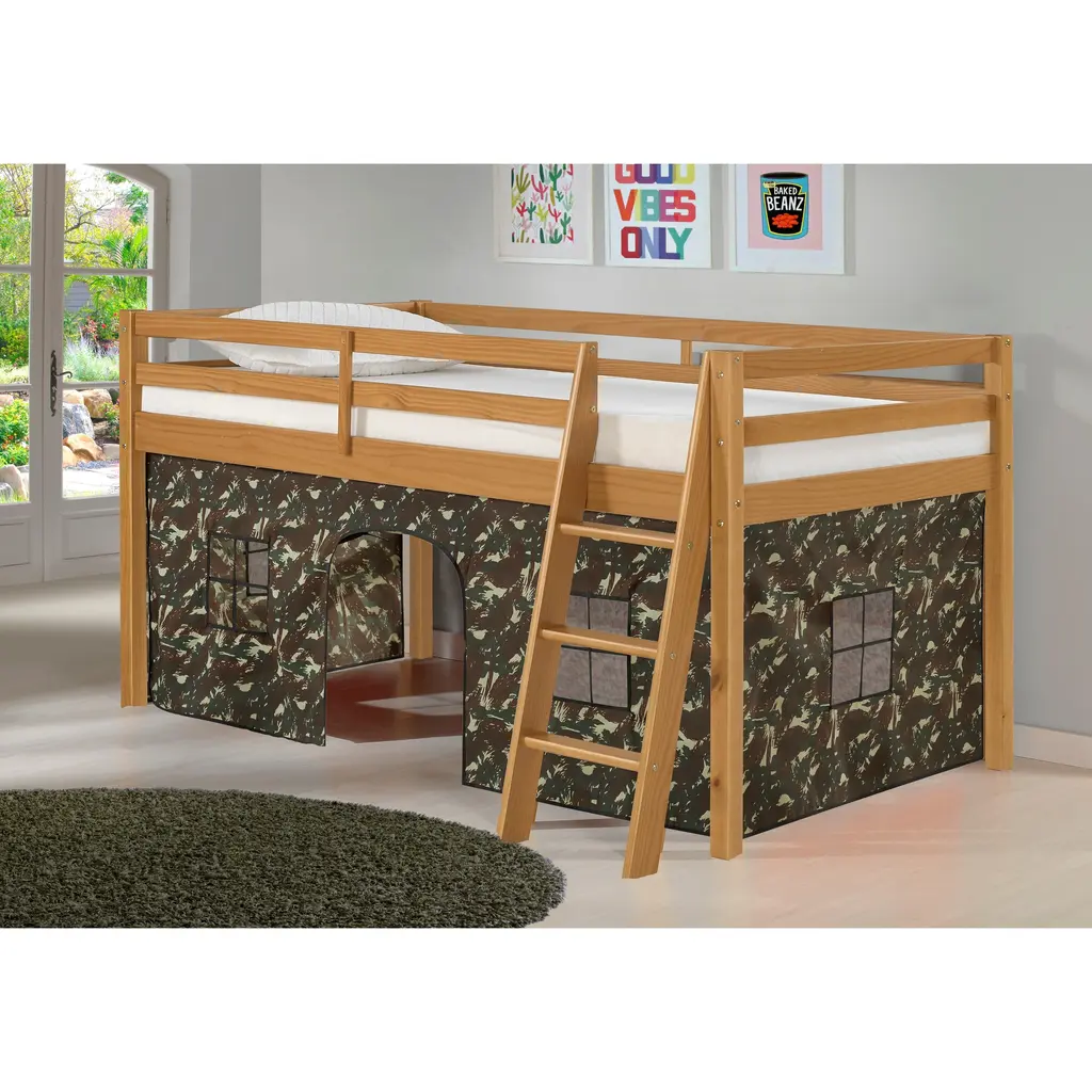 Roxy Twin Junior Loft Solid Wood Bed With Playhouse Tent - White Gray Camo