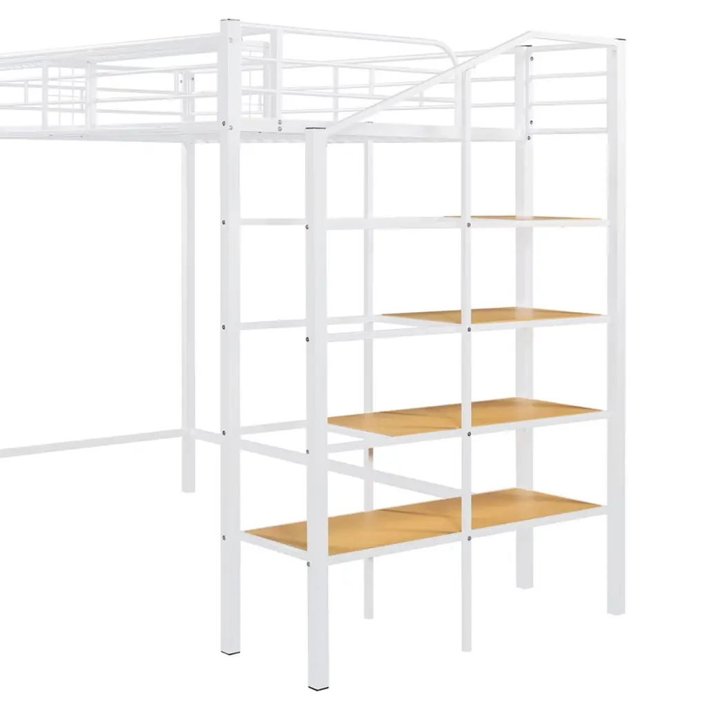 Sapphtopaz Metal Twin Size Loft Bed With Upper Grid Storage Shelves Space-saving Storage Loft Bed With Storage Stairs, Bed Frame For Small Space,white