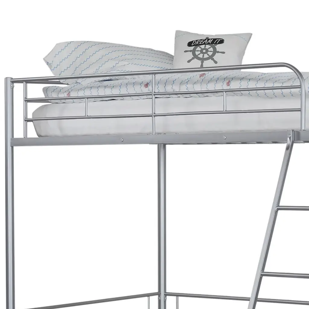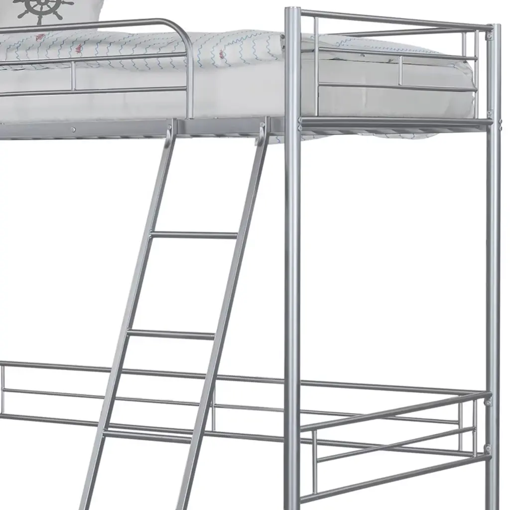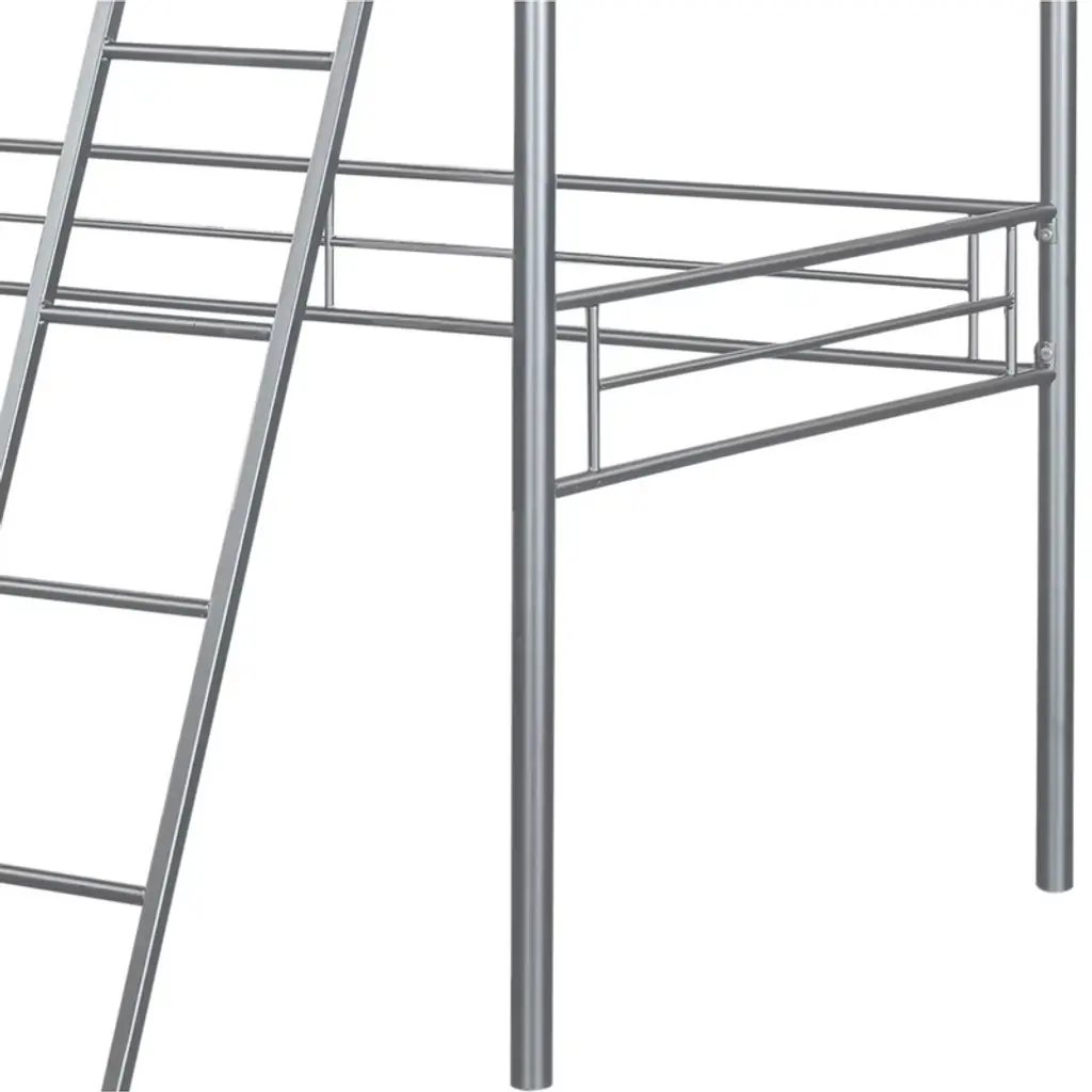 Sapphtopaz Twin Size Loft Bed With High Under Bed Space, Metal Bed Frame With Ladder & Safety Guardrail, Space-saving Bunk Bed For Adults&teen, Silver