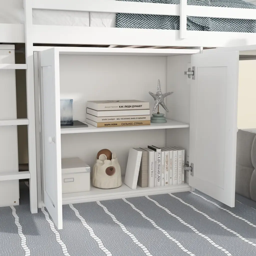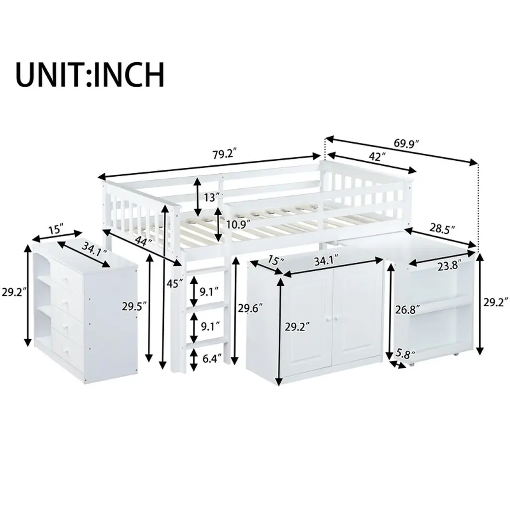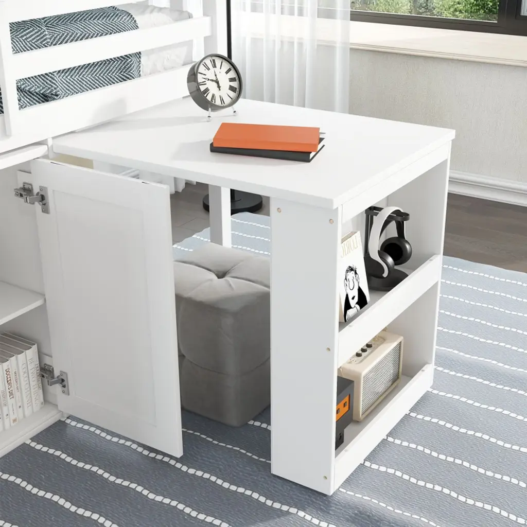 Sapphtopaz Twin Size Loft Bed With Multiple Storage&pulling-out Desk Wood Loft Bed With Guardrail&ladder,space-saving Kids Bed Frame For Bedroom,white