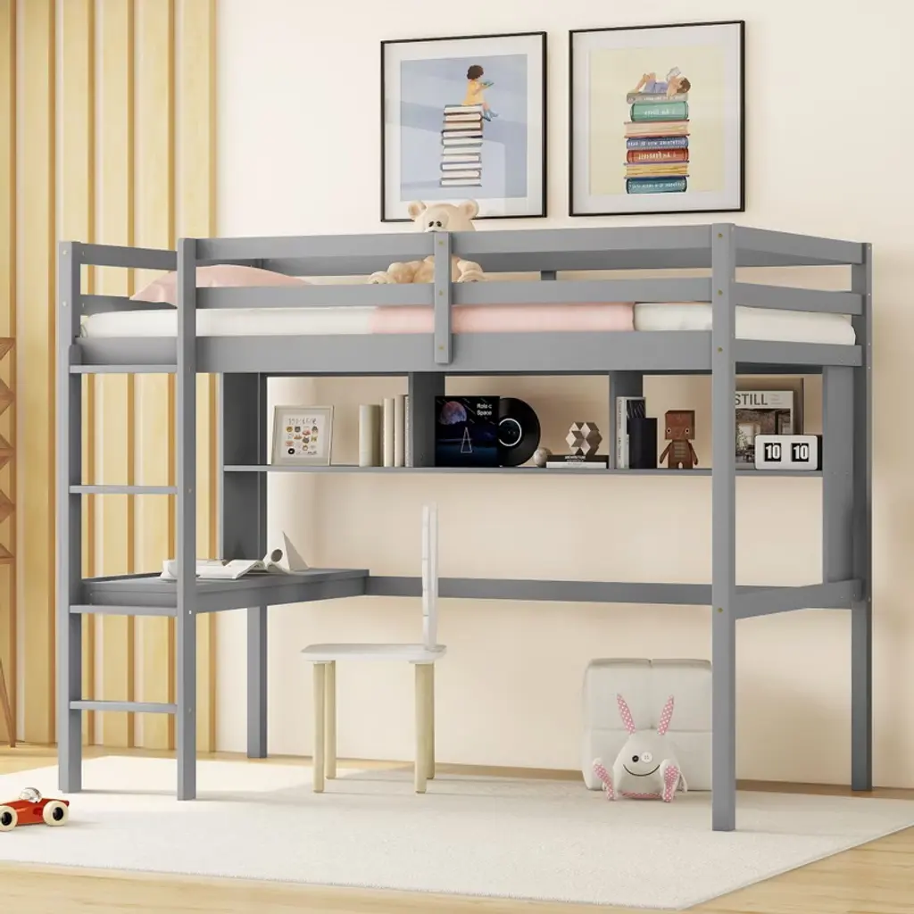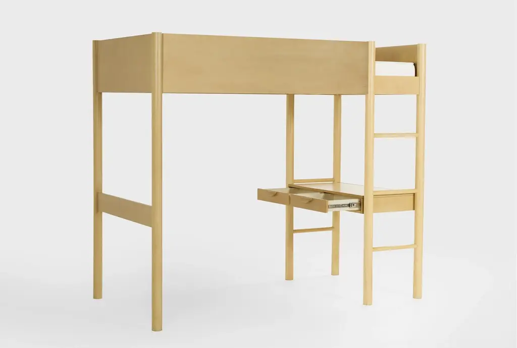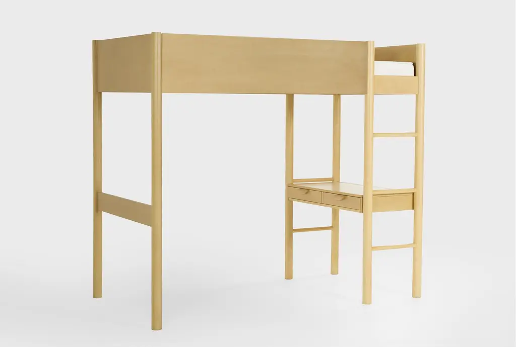 Transform your child's room with the Seren Twin Sleep & Study Loft Bed. This Scandinavian-inspired design combines functionality and style, making it a perfect addition to any kids' space. The natural wood finish and clean lines create a light and airy feel, suitable for various decor styles.