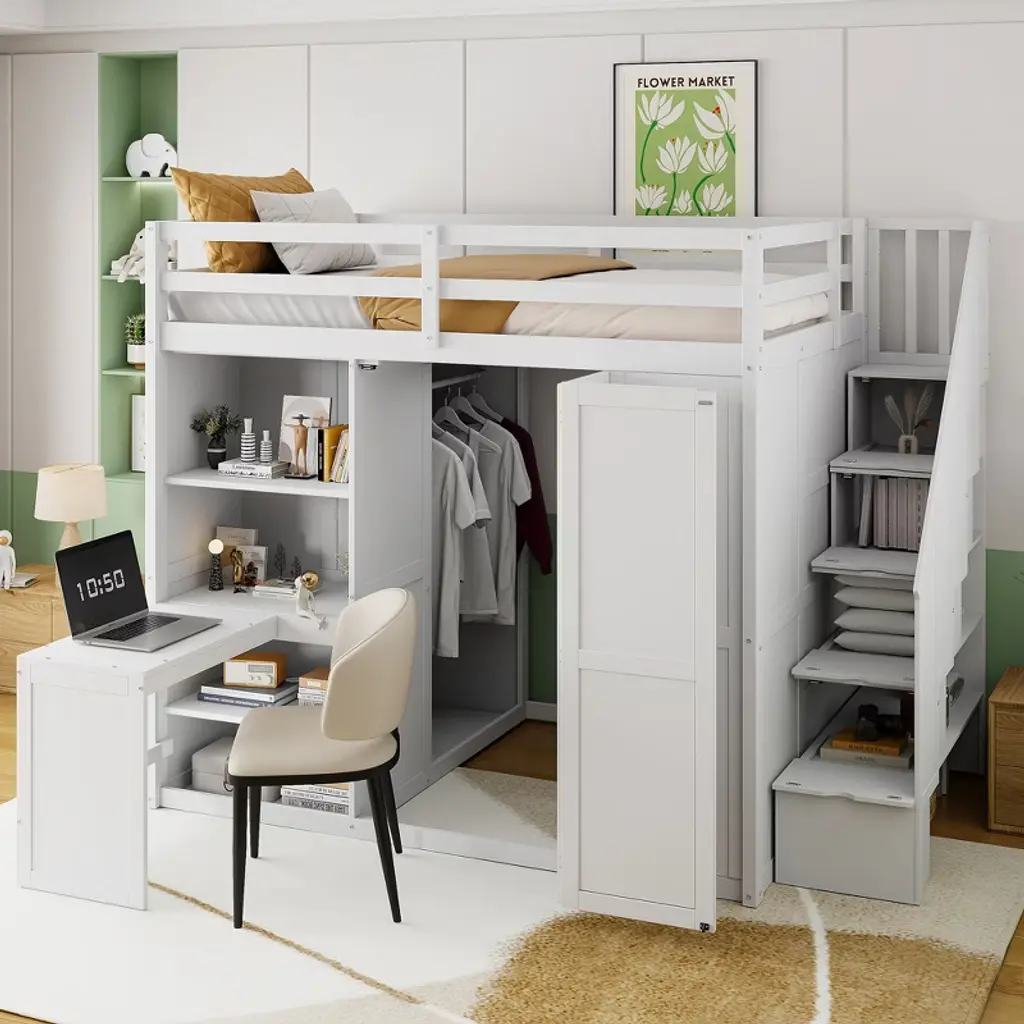Småstad Loft Bed Frame, Desk And Storage - White Twin