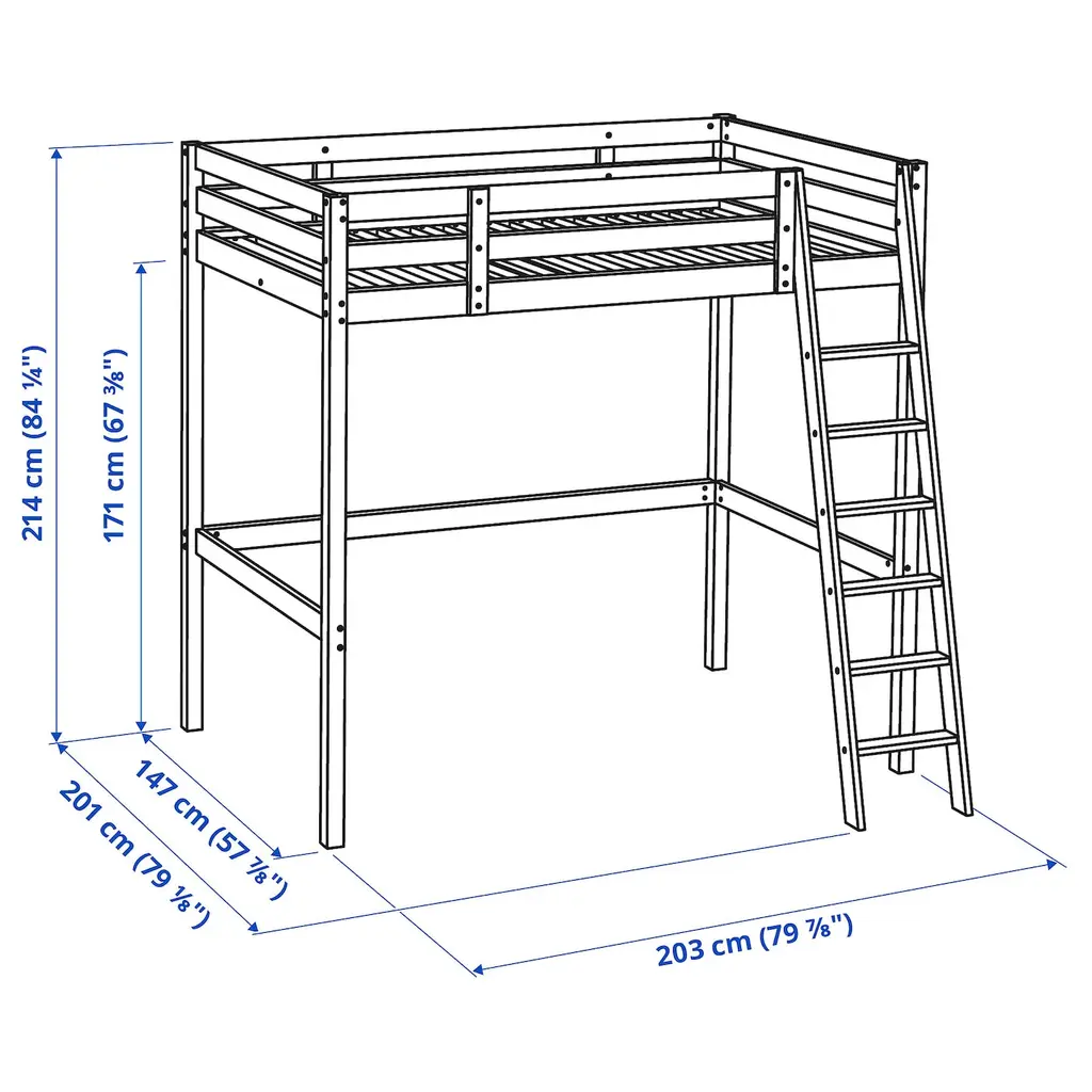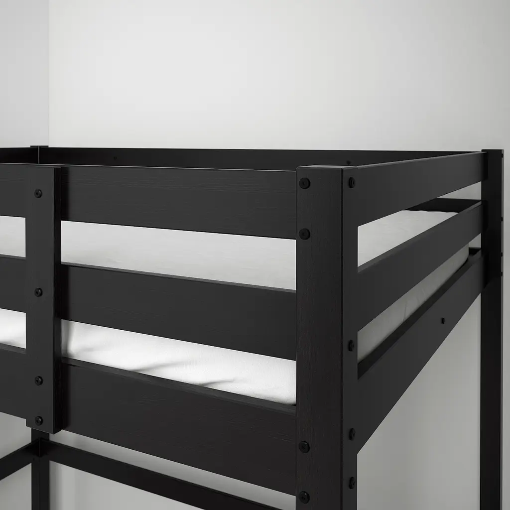 STORÅ Loft bed frame - black Full/Double. You can use the space under the bed for storage, a work space or seating. The ladder can mount on the left or right side of the bed. Made of solid wood, which is a durable and warm natural material. Minimum ceiling height required: 8' 10".
