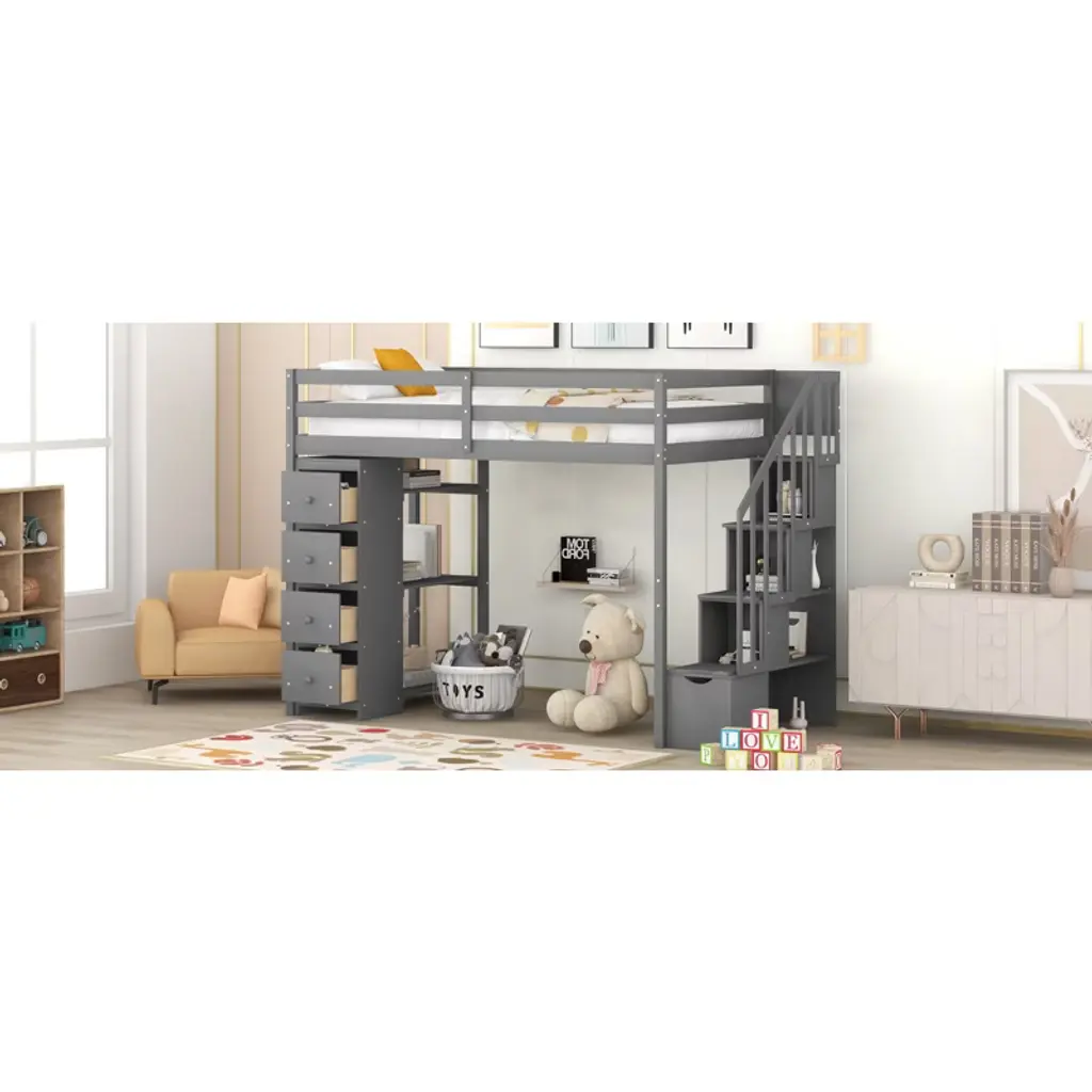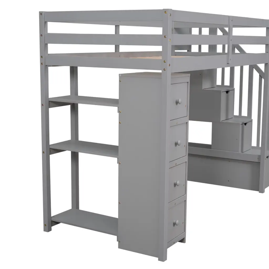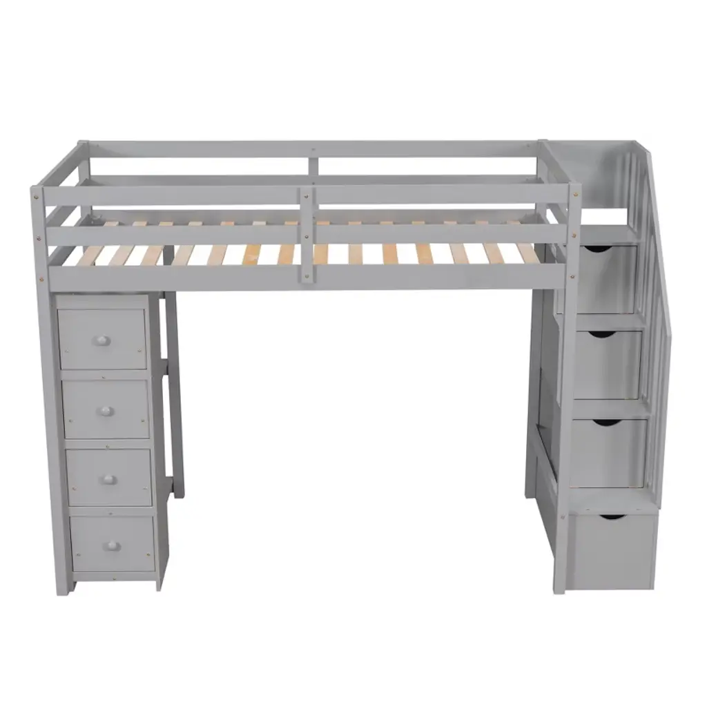 Twin Size Loft Bed With Storage Drawers And Stairs