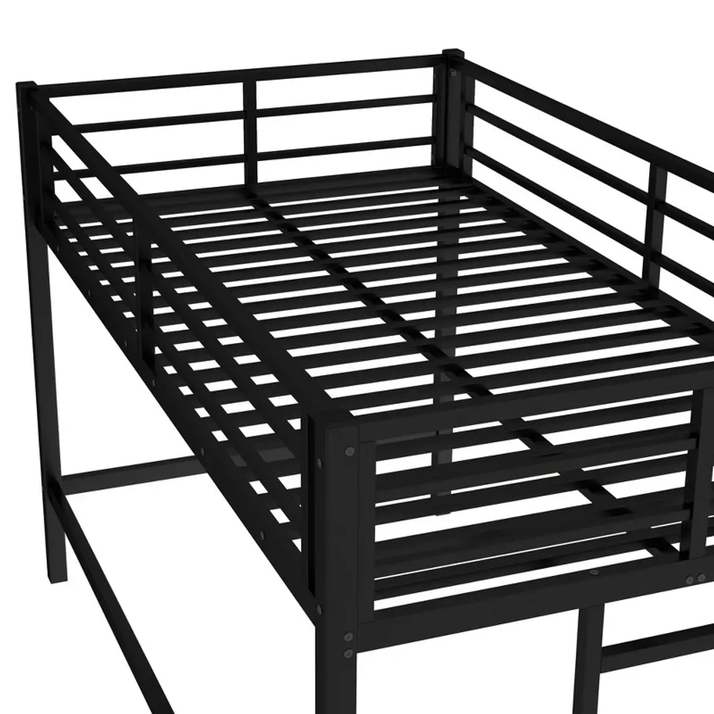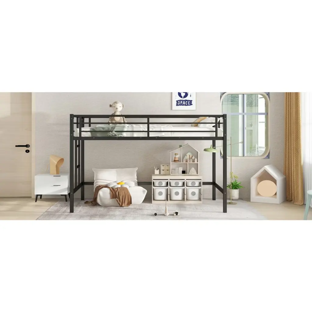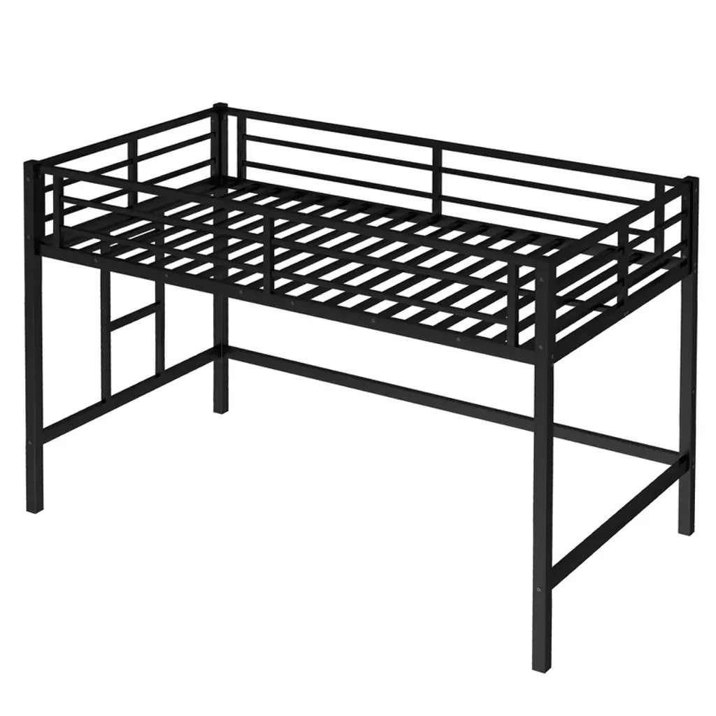 Twin Size Metal Loft Bed With Easy Climbing Ladder And Guardrails For Kids