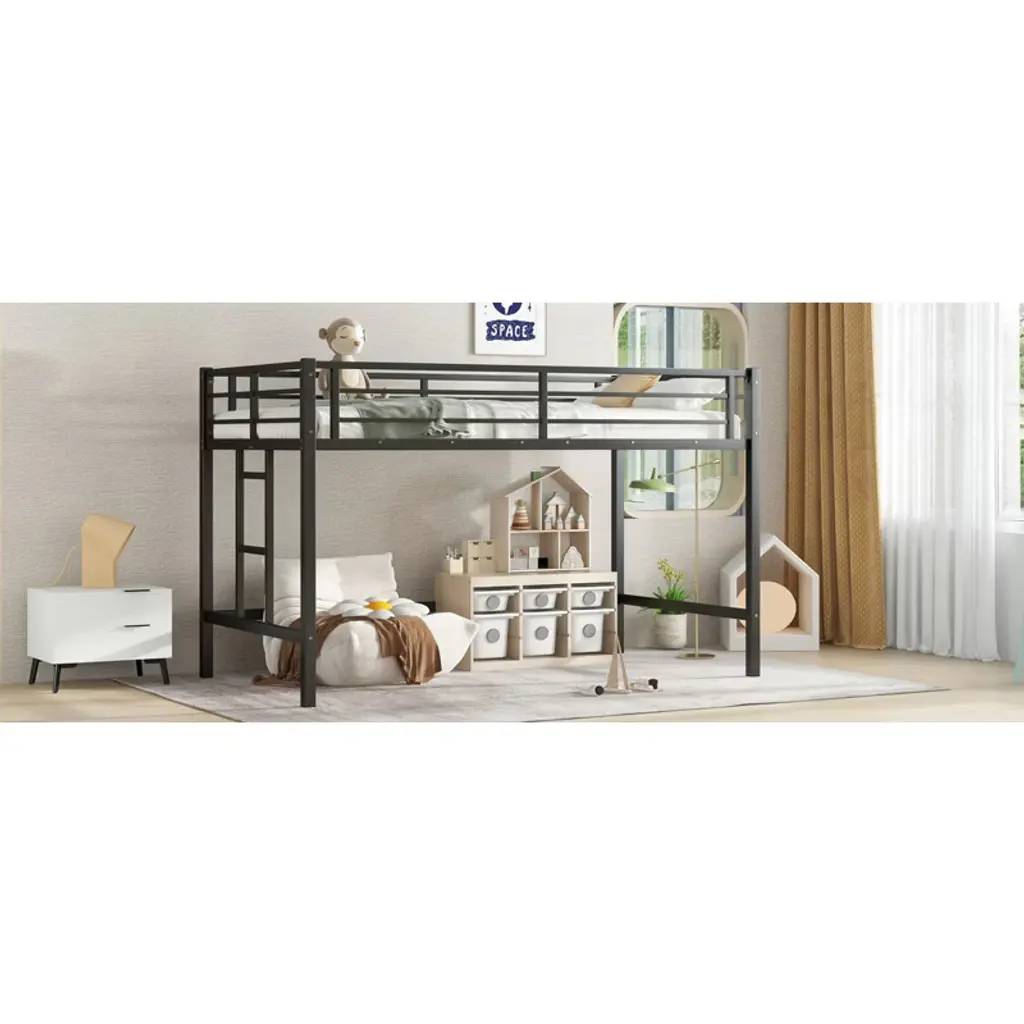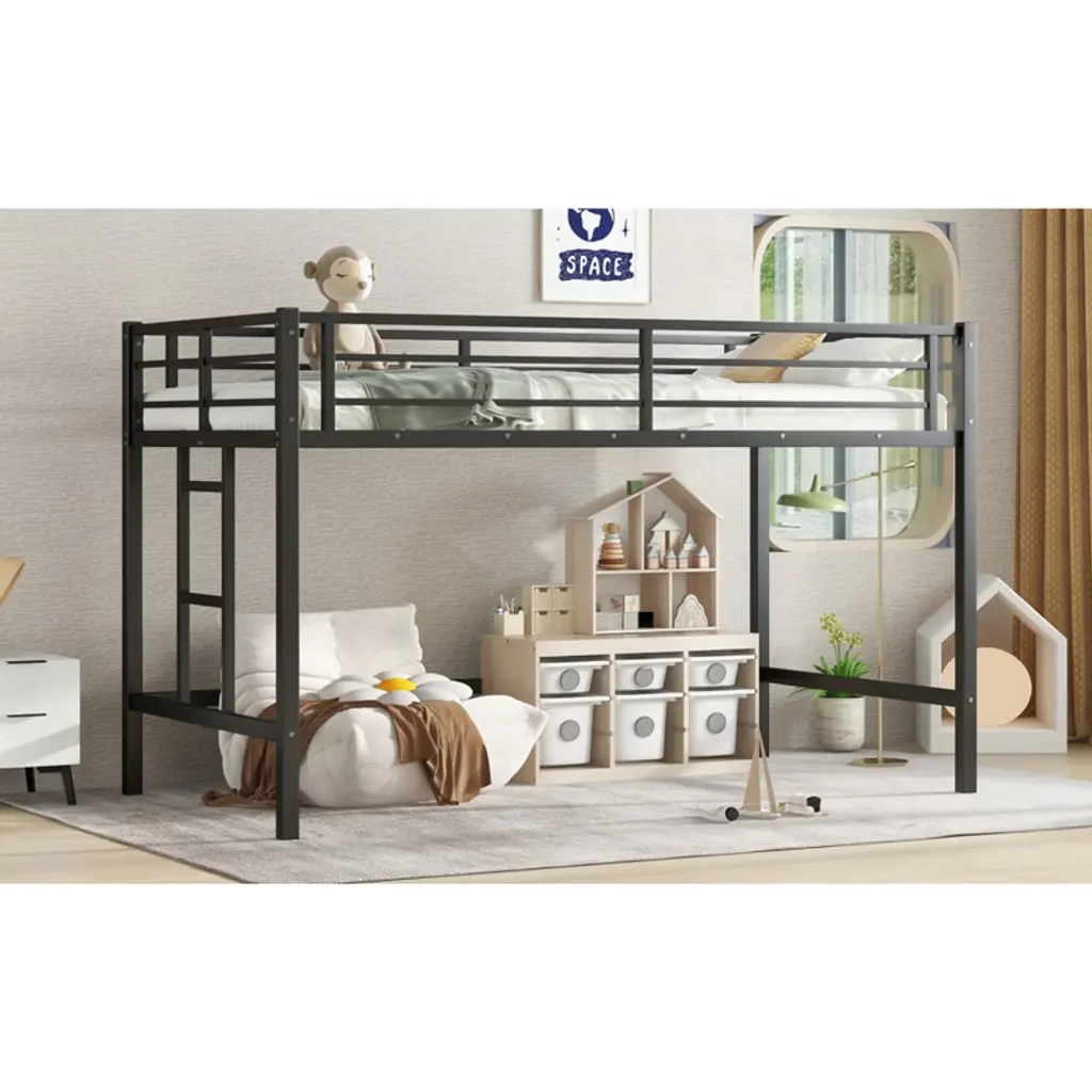 Product Features Classic Metal Loft Bed Frame: Adopting a classic and minimalist design, adding a touch of elegance to your bedroom, suitable for any decoration style. The perfect metal loft bed for children, teenagers, boys, and girls.Adequate storage space: This bed has enough storage space under it, which can be used to store daily items or create a playground for children. And this bed is higher than most low loft beds on the market.Adequate storage space: This bed has enough storage space under it, which can be used to store daily items or create a playground for children. And this bed is higher than most low loft beds on the market.Safety Design: This loft bed is equipped with raised guardrails to prevent your child from falling and provide them with a peaceful sleep. Additionally, a convenient ladder and comfortable steps make it easy for children to climb up and down.Easy to Assemble: All parts included in your package are indicated clearly. With step-by-step installation manual and pre-drilled holes, you can easily assemble this bed individually. Descriptions This loft bed features a classic and minimalist design, making it the perfect furniture for your home. High quality materials ensure the bed is sturdy and durable, providing a good sleeping space for your child. Underneath the bed is a perfect storage space, providing a great place for children's toys and books. Weight & Dimensions Product Type: Metal Loft BedColor: BlackSize: TwinMaterial: MetalOverall Product Dimension: 77.6”L*42.5’’W*49.3”HOverall Product Weight: 52.91 LBSBed Weight Capacity: 350LBSRecommend Mattress Thickness: 6''Number of Package: 1Package Dimension & Weight: Please refer to the SpecificationLevel of Assembly: Full Assembly NeededEligible for Hardware Packs: YesNote: All the pictures are taken by actual samples, slight chromatic aberration may occur due to lighting or display.