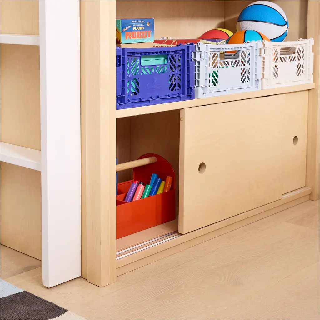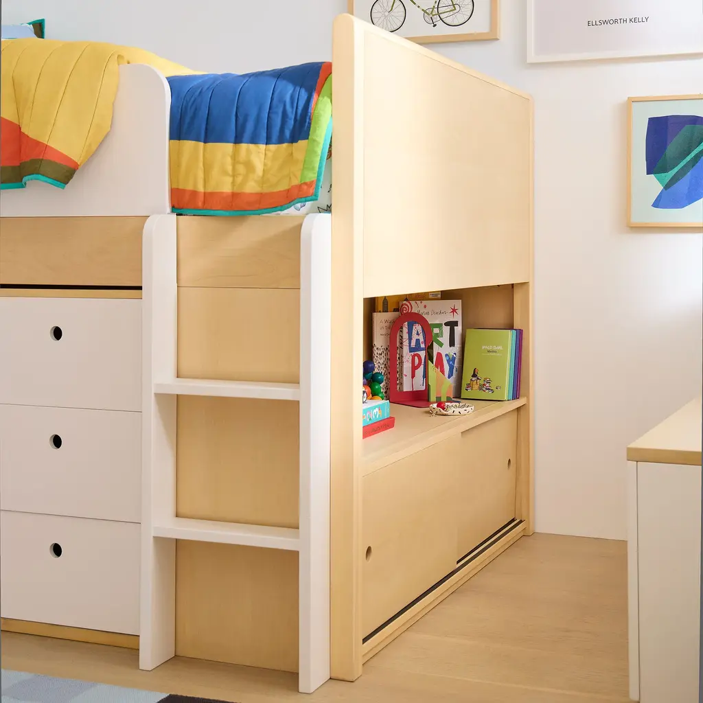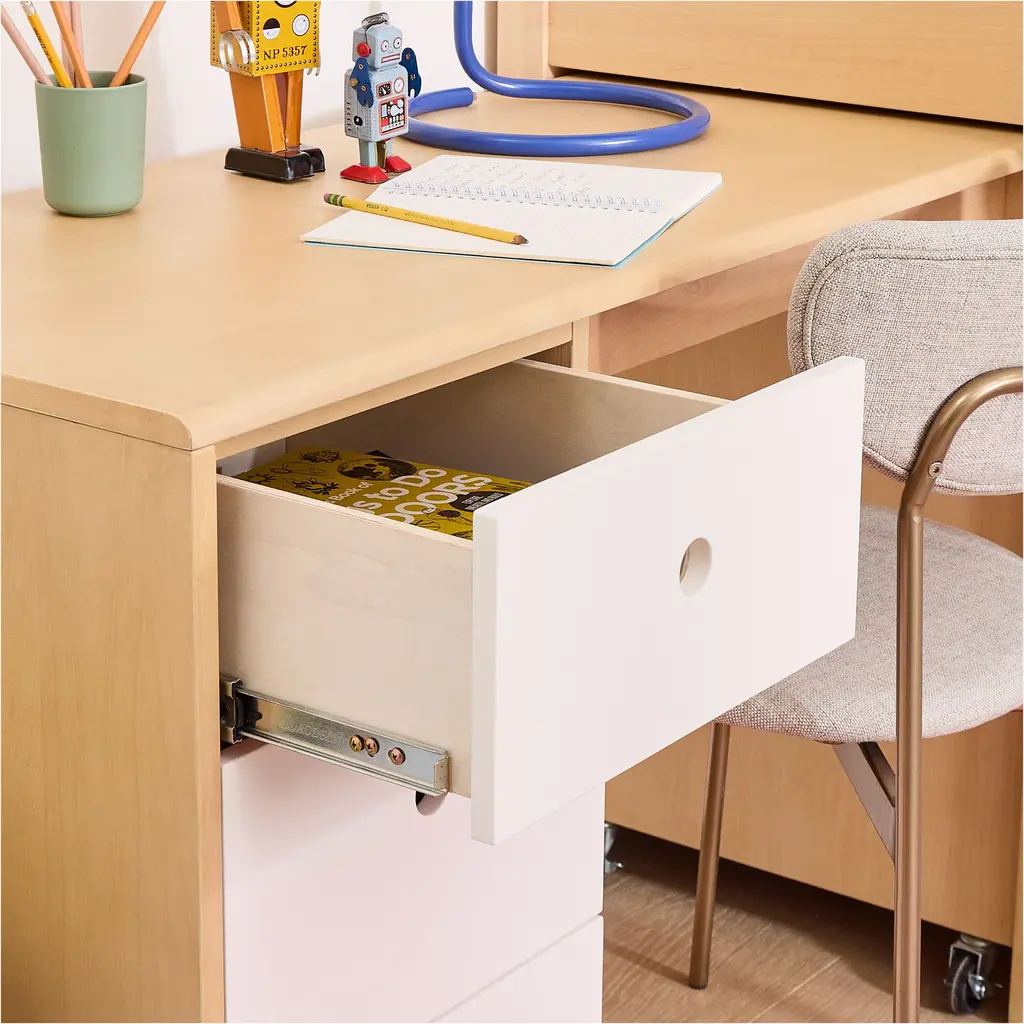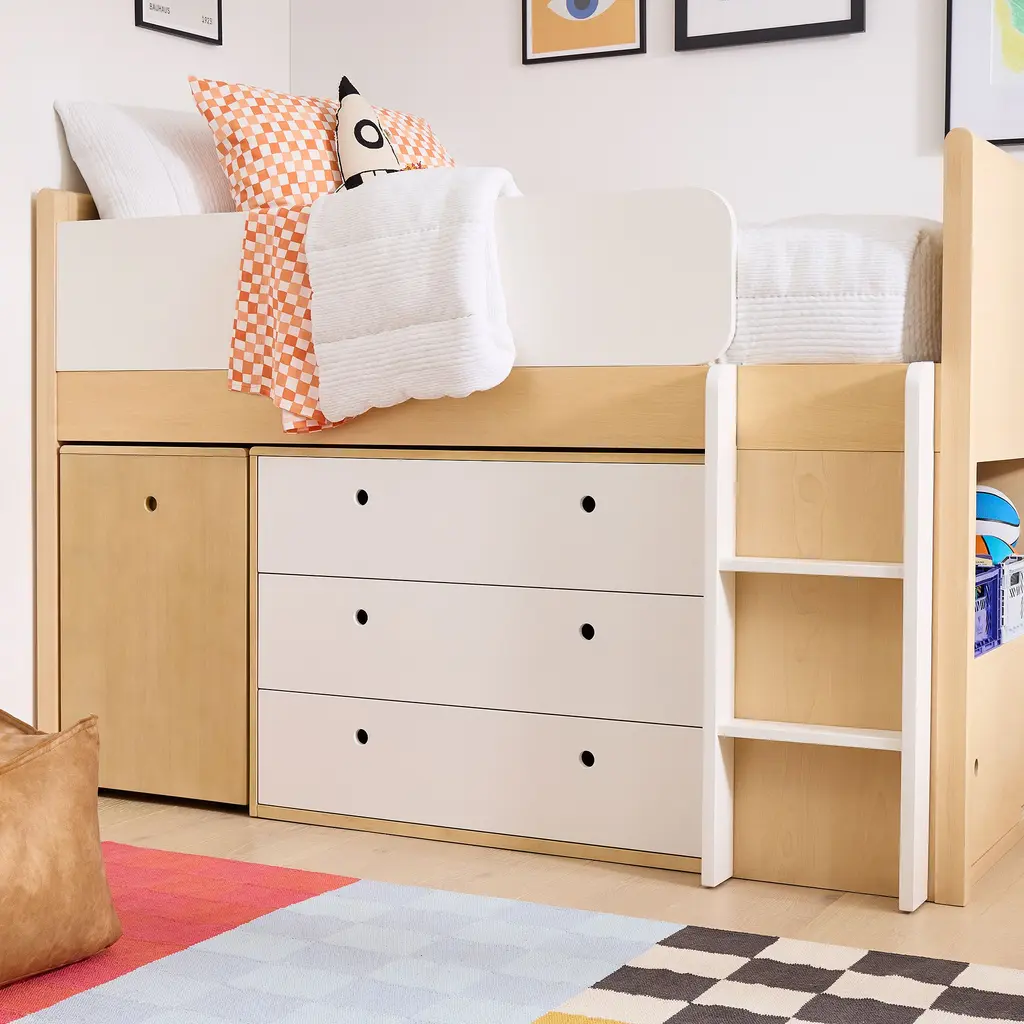 This three-in-one furniture will unify the look of your kids bedroom. Its compact design is a win for smaller rooms. Ample storage for clothes, toys, school supplies and more.