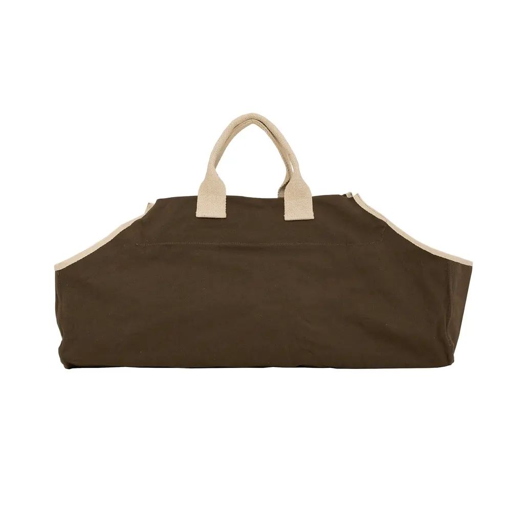 This canvas log tote is a simple and sturdy carrier, made of cotton canvas, for easy transporting of logs from storage to the hearth. Empty firewood right into your basket or bin and the bag can be folded away or hung up for next time. Lightweight and durable, made from 100% cotton duck, available in solid color with contrast piping.