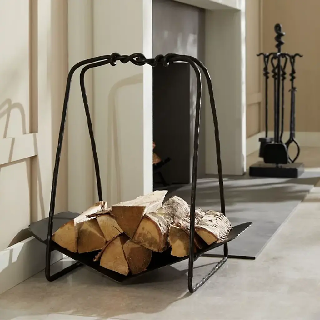 The Darius Log Holder from Arteriors is a fusion of farmhouse and rustic modern styles. It is made from hammered iron to keep your logs organized. This piece is inspired by the Medieval period. Entwined at the base are angular rods reminiscent of the twisted roots of a tree, adding an element of mystery to the design.