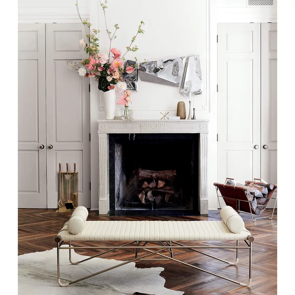Luxe leather and stainless steel combine to create a chic firewood tote from the goop x CB2 collection. "It's tricky to find functional fire accoutrements that are also beautiful," explains the goop team. "What's really cool is that the big leather tote can be taken out of its holder, carried out to the wood pile, filled up and brought back inside full of logs for storage." CB2 exclusive.