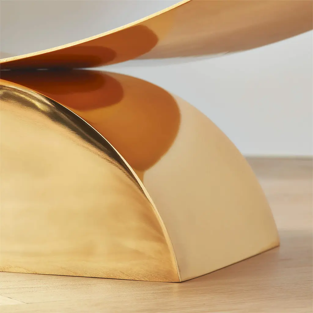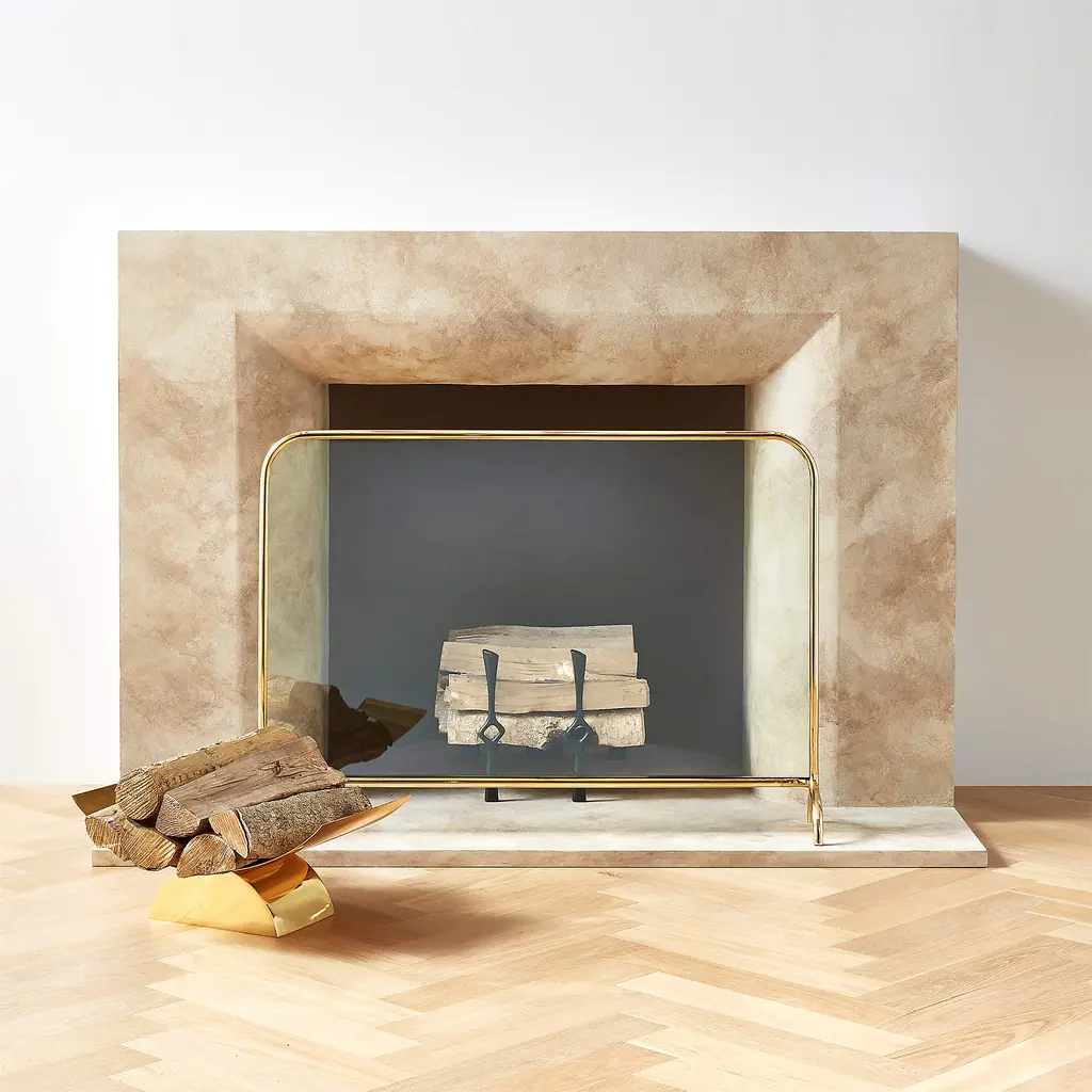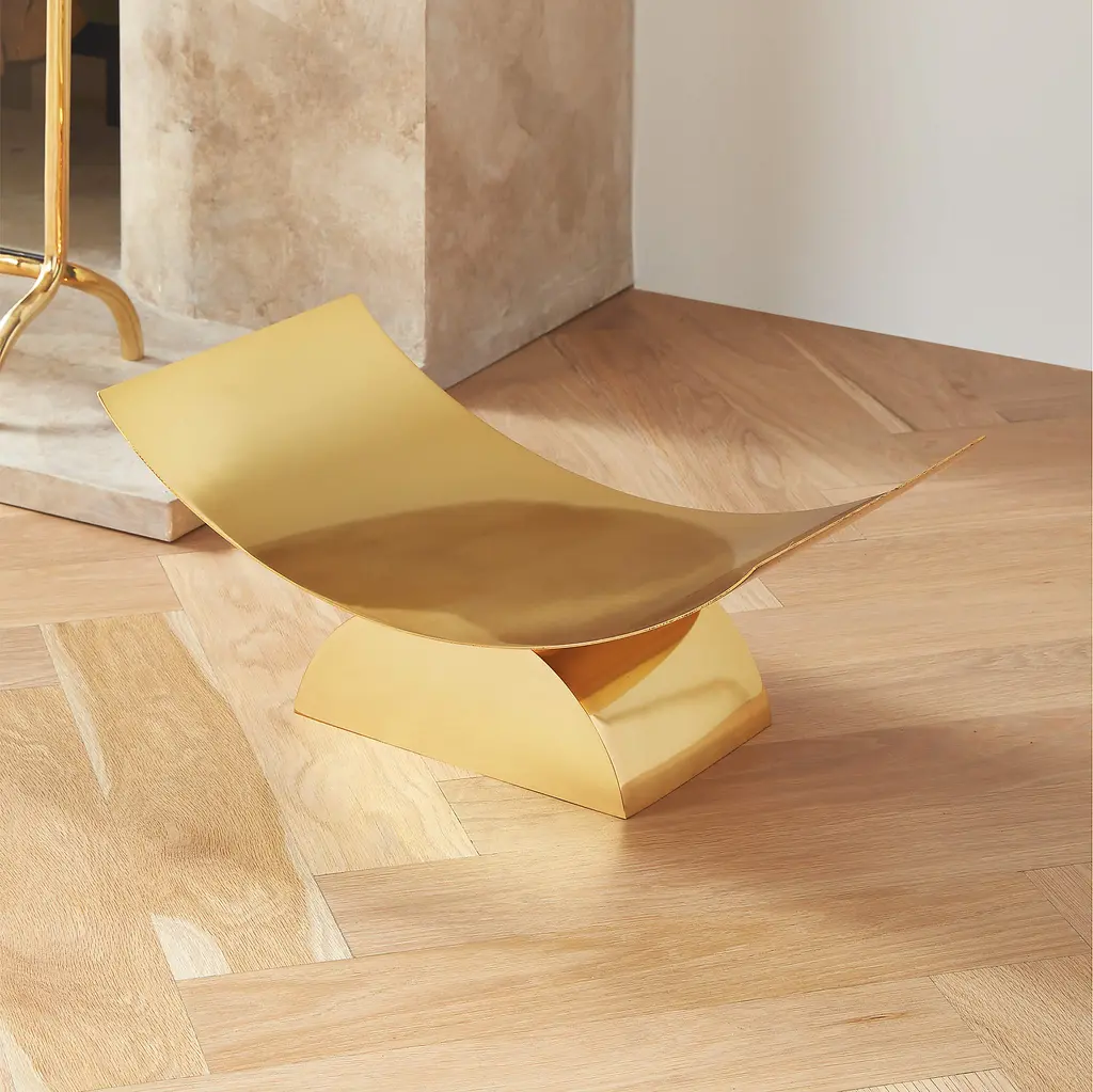 Designed by Jannis Ellenberger, curved log holder is crafted of brass with a contrasting stainless steel base. Brass is unlacquered, offering a living finish with the patina of a vintage find. CB2 exclusive.Due to the nature of the material, brass patina will vary in color and darken over time.
