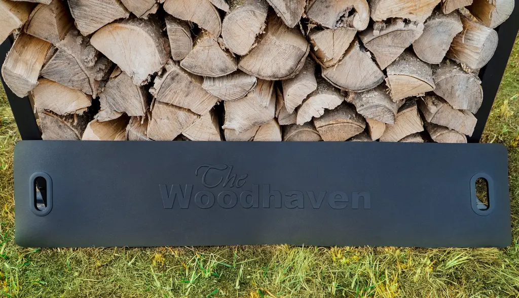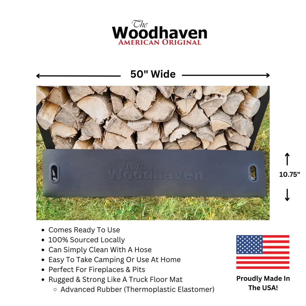 The Woodhaven® Log Carrier is the perfect accessory to compliment any of our fine Woodhaven Firewood Racks. This log carrier is made out of waterproof Vyram, which is the same material the "Big Three" auto makers use to make their floor mats and door-ding panels. The strength and durability of The Woodhaven Log Carrier will outlast any sewn product on the market. Comfort handles fold in to easily carry any size firewood load. The carrier is branded with our "Woodhaven" logo. SPECS Measures 50" x 10 3/4" FEATURES Washable Waterproof Strong and Durable Made in the USA