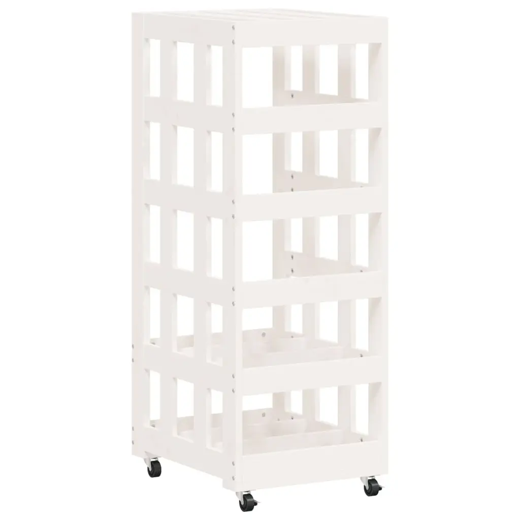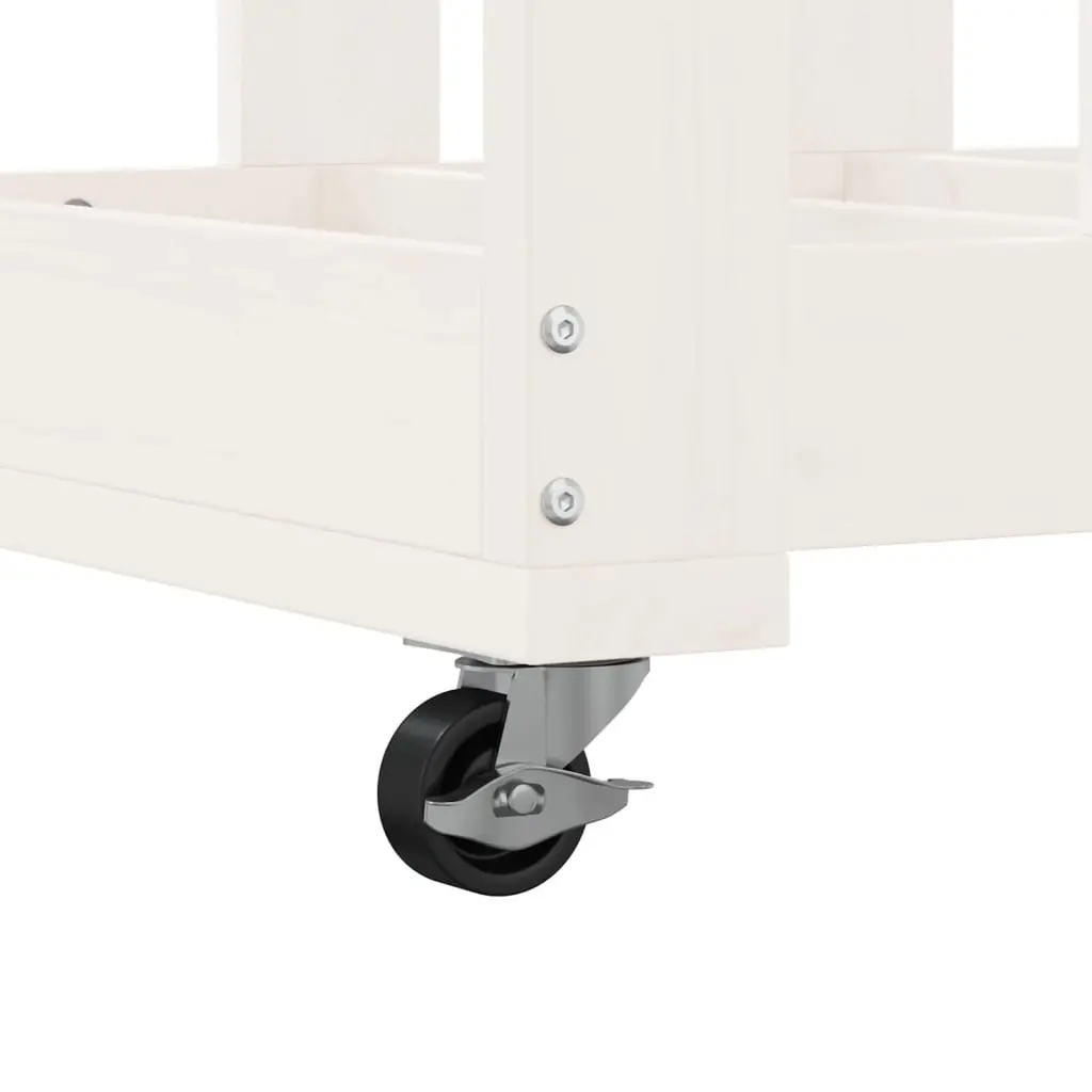Vidaxl Log Holder With Wheels White 15.7"x19.3"x43.3" Solid Wood Pine
