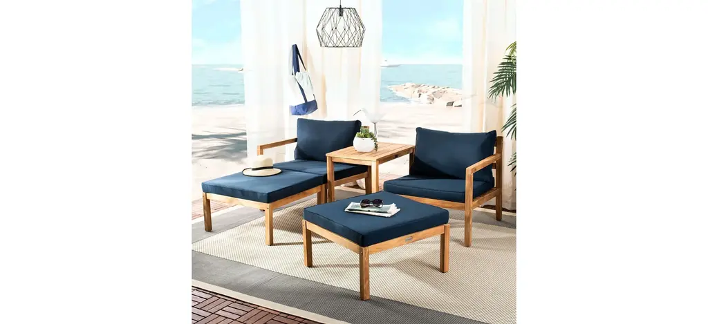 Setting the scene for your exclusive staycation paradise, the Katara 5-pc. Patio Set lets you lounge in luxury. Complete with versatile ottomans that double as extra seats and a versatile acacia wood table, the cushioned feel and rich look of Katara brings the cabana to you.