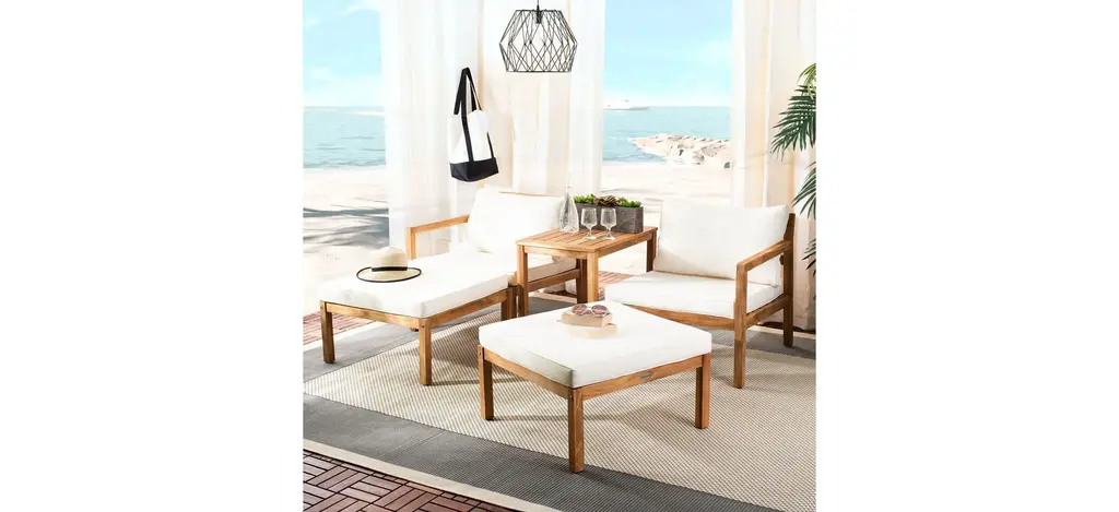 Setting the scene for your exclusive staycation paradise, the Katara 5-pc. Patio Set lets you lounge in luxury. Complete with versatile ottomans that double as extra seats and a versatile acacia wood table, the cushioned feel and rich look of Katara brings the cabana to you.