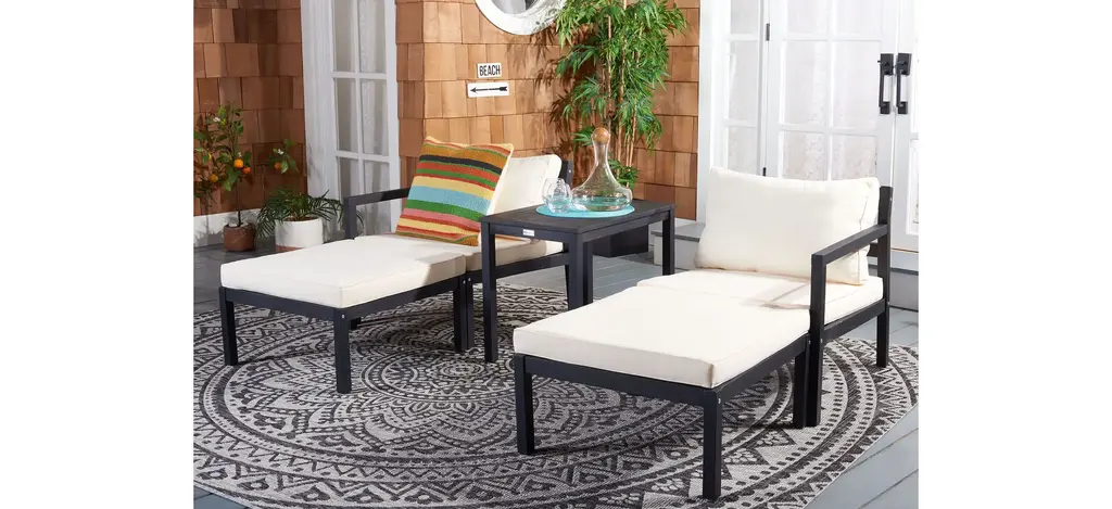 Setting the scene for your exclusive staycation paradise, the Katara 5-pc. Patio Set lets you lounge in luxury. Complete with versatile ottomans that double as extra seats and a versatile acacia wood table, the cushioned feel and rich look of Katara brings the cabana to you.
