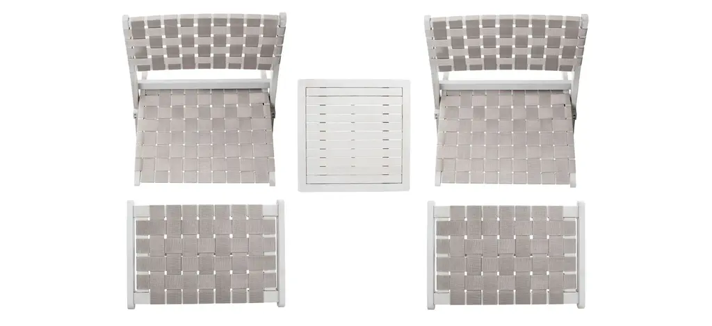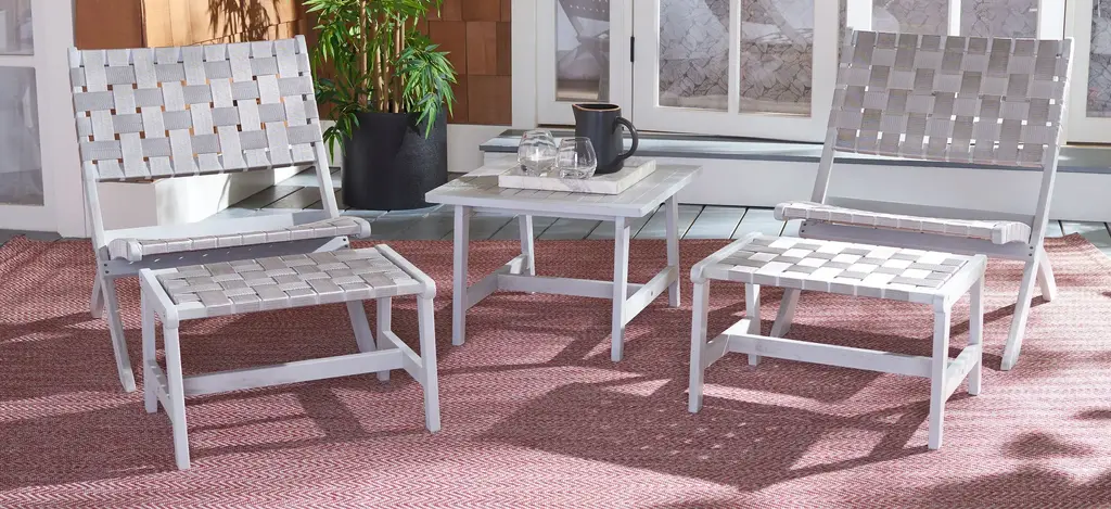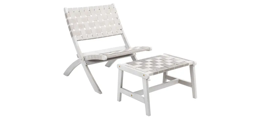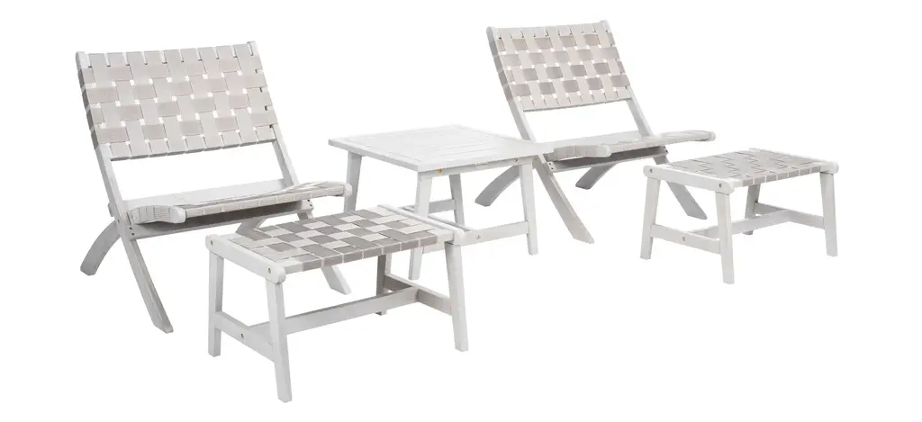 Stretch out and enjoy the summer breeze with this Shea 5-pc. Patio Set. Two natural finished acacia wood chairs and matching ottomans allow for lavish lounging in the sunshine, and an end table provides ample space for coffees, cocktails, or snacks.