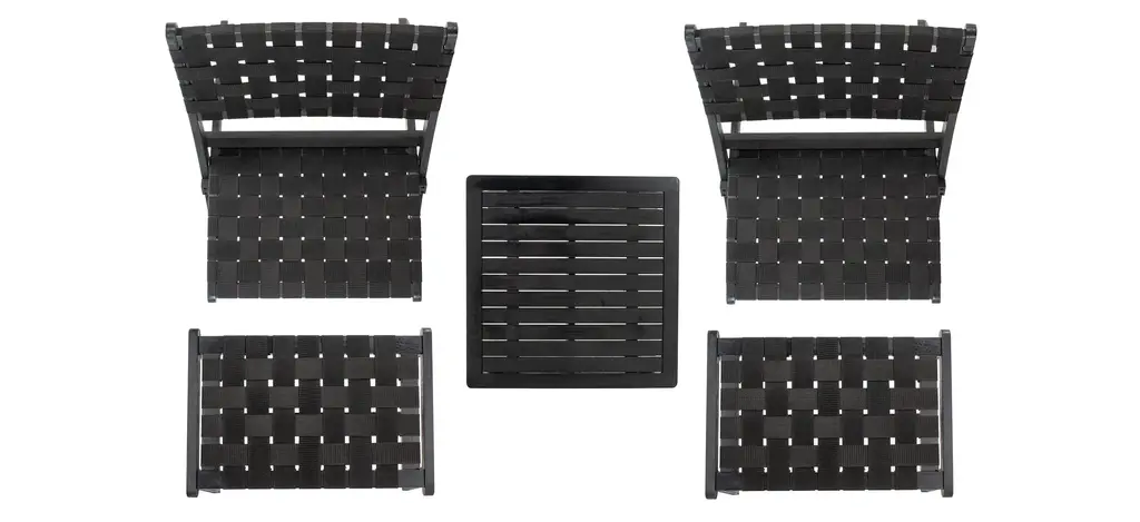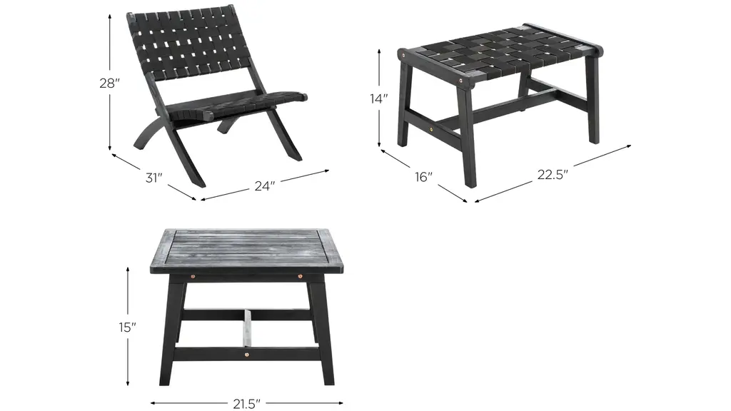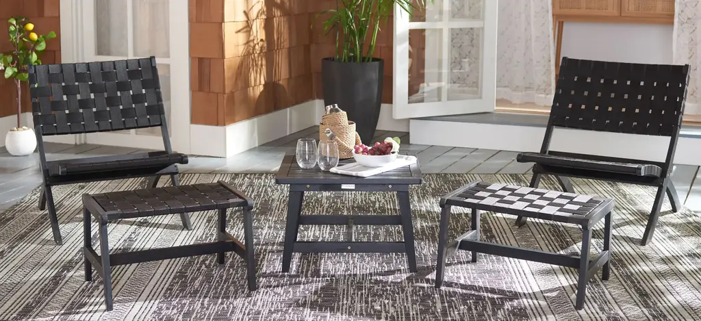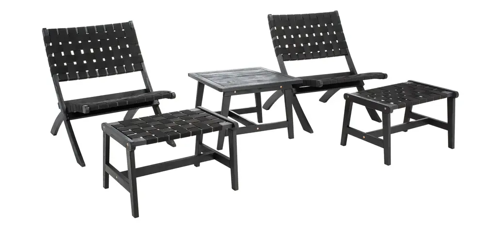 Stretch out and enjoy the summer breeze with this Shea 5-pc. Patio Set. Two natural finished acacia wood chairs and matching ottomans allow for lavish lounging in the sunshine, and an end table provides ample space for coffees, cocktails, or snacks.