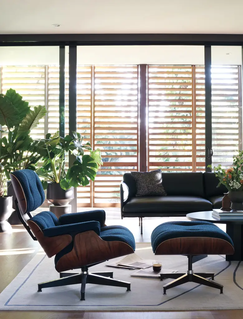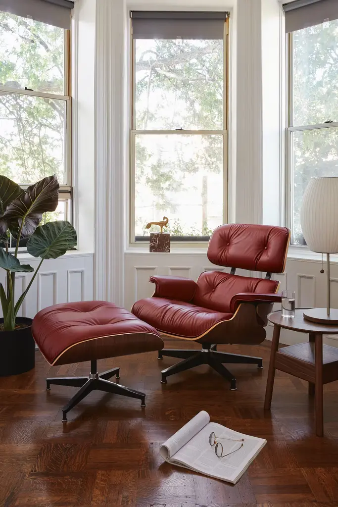 Charles and Ray Eames had ideas about making a better world, one in which things were designed to bring greater pleasure to our lives. Their iconic Eames Lounge Chair and Ottoman (1956) began with a desire to create a chair with “the warm, receptive look of a well-used first baseman's mitt." The result embodies what it really means to lounge. In continuous production since its introduction, this set is widely considered one of the most significant designs of the 20th century. Combining soft, inviting leather, mohair, or fabric with the sleek form of molded wood, the Eames Lounge Chair and Ottoman is the culmination of the Eameses' efforts to create a club chair using the molded plywood technology they pioneered in the '40s. Even today, each piece is assembled by hand to ensure the highest level of quality and craftsmanship, and you'll be pleased to discover the set gets even better with use and age. Cushions snap in and can be removed and changed. This is the authentic Eames Lounge Chair and Ottoman by Herman Miller. Available in standard or tall. Herman Miller and the Eames Office, still run by the Eames family, developed the taller size in response to the fact that the average height of people worldwide has increased about an inch since the chair was designed. The variations in size are subtle to the eye, but for taller individuals, they make the difference between “I love Eames" and “Eames loves me."