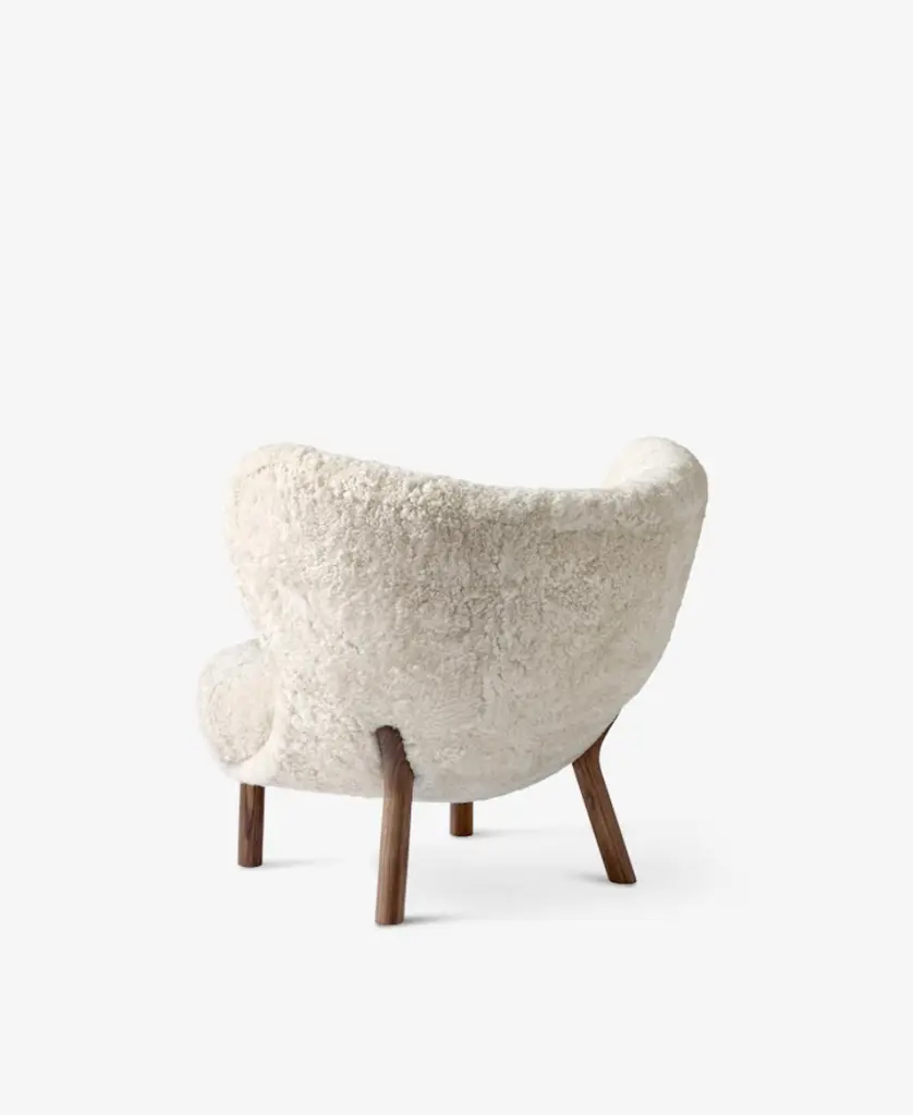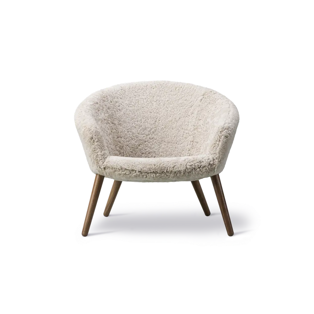 Little Petra Lounge Chair & Ottoman In Sheepskin With Oiled Walnut Frame