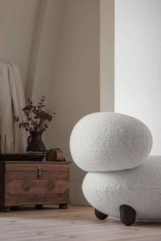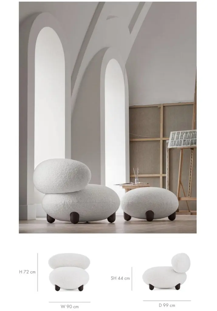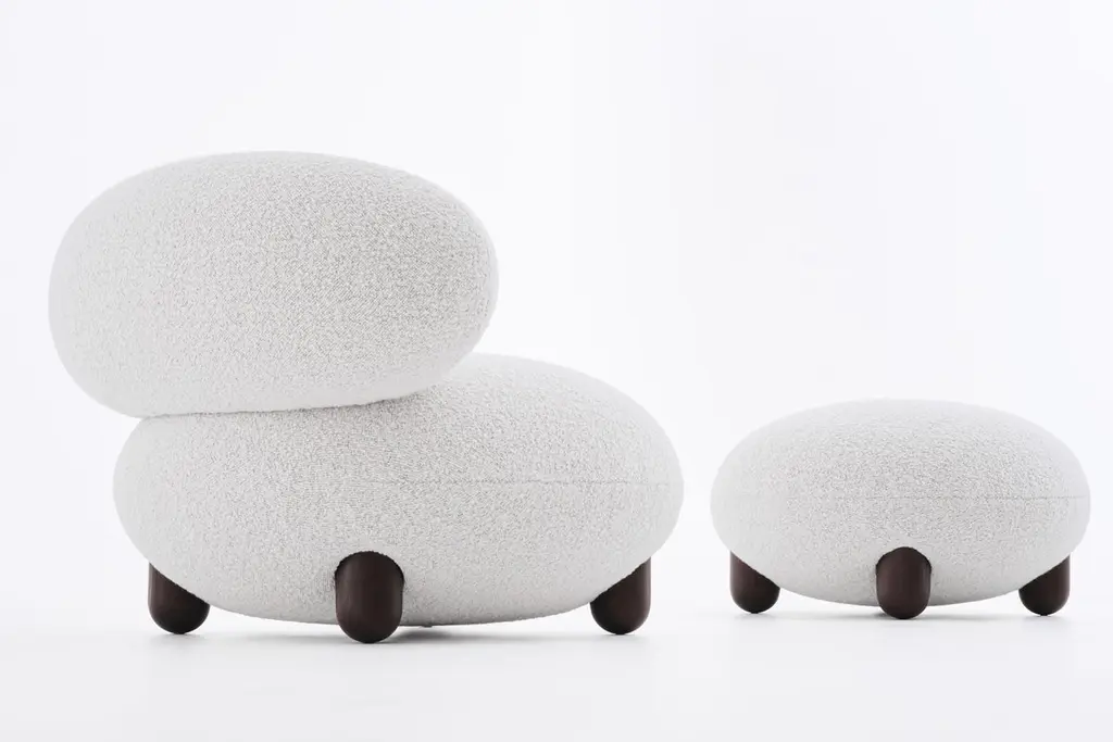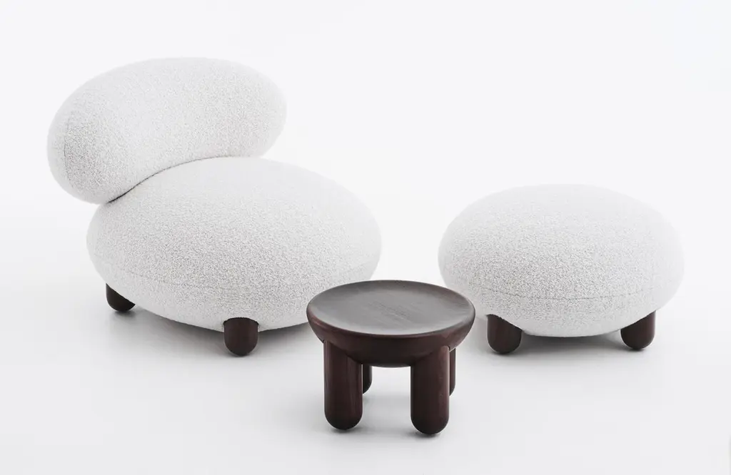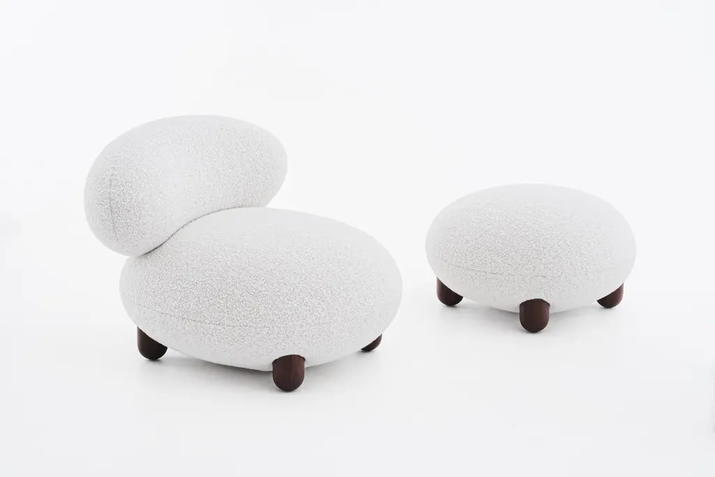 The “Flock” furniture collection draws on the idea that home is a place of comfort, sanctuary, and gathering and should be filled with personalized, character-rich, and eye-catching statement objects.Soft, voluptuous, sensual forms, natural materials, and pleasant-to-the-touch surfaces reflect a desire for warmth and cocooning."Subtly curved artistic silhouettes, soft fabric, and wooden legs define the furniture's relaxation and cuteness. We wanted to create furniture that would become part of the family, intimate and beloved," - said Kateryna Sokolova, designer of the Flock collection.The name "Flock," which means "to move or come together," refers to the collection's role as a peaceful oasis and the main meeting space within the home.Designer: Kateryna SokolovaMaterials: wood, plywood, foam rubber, injection-molded soft foam, textileLounge Chair Dimensions: H 72 cm, W 90 cm, D 99 cm seat H 44 cmOttoman Dimensions: D - 70 cm, H 41 cmLead Time: 2 months.