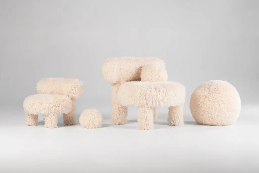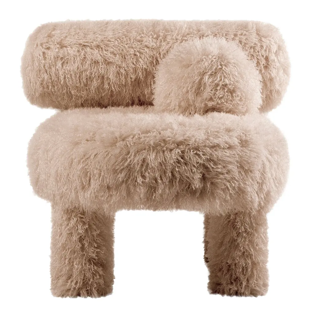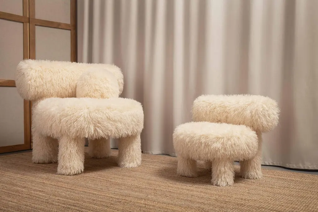 Modern Low Chair Gropius Cs1 Fluffy Edition With Ottoman In Faux Fur By Noom