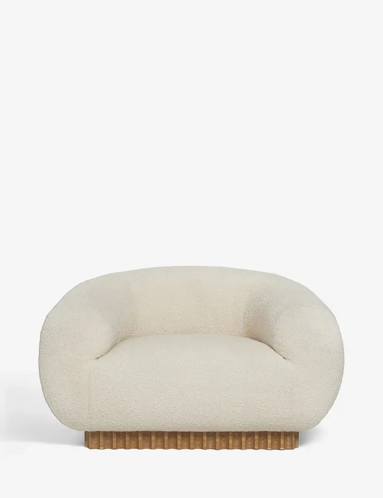 New NOOM furniture collection is dedicated to the 100th anniversary of the founding of the Bauhaus School in Germany. Ideas of functionalism and conciseness, the combination of Craft and art, buildings and objects formed by a composition of simple geometric shapes, are still relevant. NOOM furniture is a tribute to the great thinkers who formed the modernist principles and brought them to life. The designer has “gathered” the shape of this chair from balls and cylinders. A round pillow and an ottoman appeal to interact: to pump, to play, to bubble.All products in the collection are called by names of famous modernist artists and architects.Designer: Kateryna SokolovaMaterials: Textile, polyurethane foam, wood, plywoodFabrics: Kvadrat boucle / JAB ascendent boucle and many other finishes by requestDimensions: H 71 cm x W 75 cm x D 75 cm