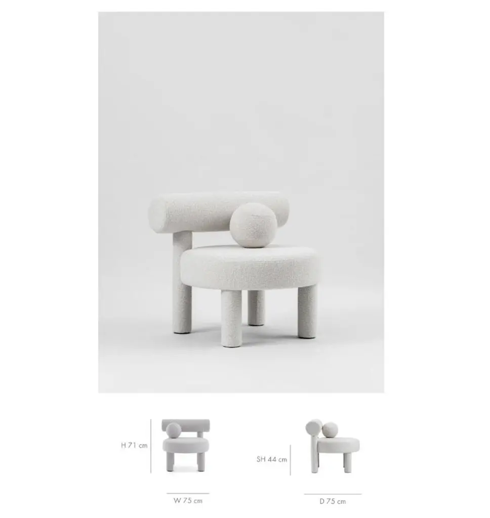 New NOOM furniture collection is dedicated to the 100th anniversary of the founding of the Bauhaus School in Germany. Ideas of functionalism and conciseness, the combination of Craft and art, buildings and objects formed by a composition of simple geometric shapes, are still relevant. NOOM furniture is a tribute to the great thinkers who formed the modernist principles and brought them to life. The designer has “gathered” the shape of this chair from balls and cylinders. A round pillow and an ottoman appeal to interact: to pump, to play, to bubble.All products in the collection are called by names of famous modernist artists and architects.Designer: Kateryna SokolovaMaterials: textile, foam rubber, wood, plywoodFabrics: Available in a wide range of fabrics by requestDimensions: H 71 cm x W 75 cm x D 75 cmSpheric ottoman: D - 50 cm