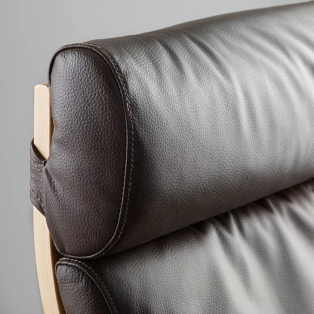 POÄNG Armchair and ottoman - birch veneer/Glose dark brown. 10-year limited warranty. Read about the terms in the limited warranty brochure. A variety of seat cushion designs makes it easy to change the look of your POÄNG chair and your living room. The high back provides good support for your neck.